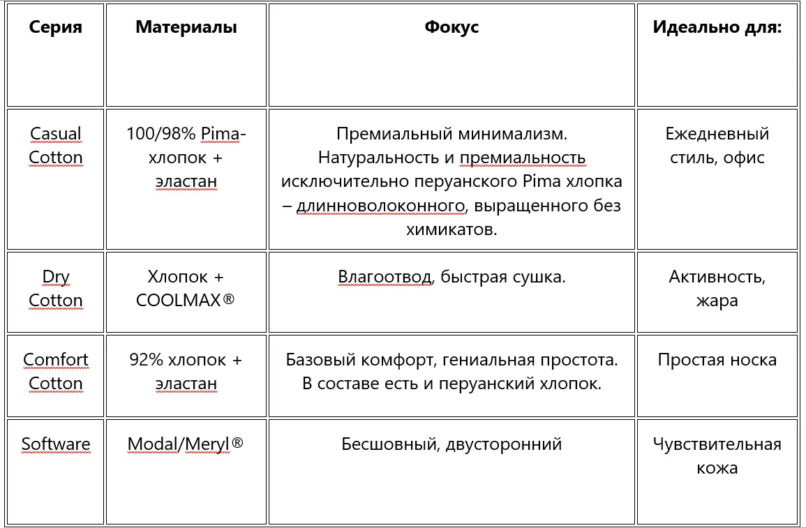 - Фокус: Базовый комфорт, гениальная простота. В составе есть и перуанский хлопок.