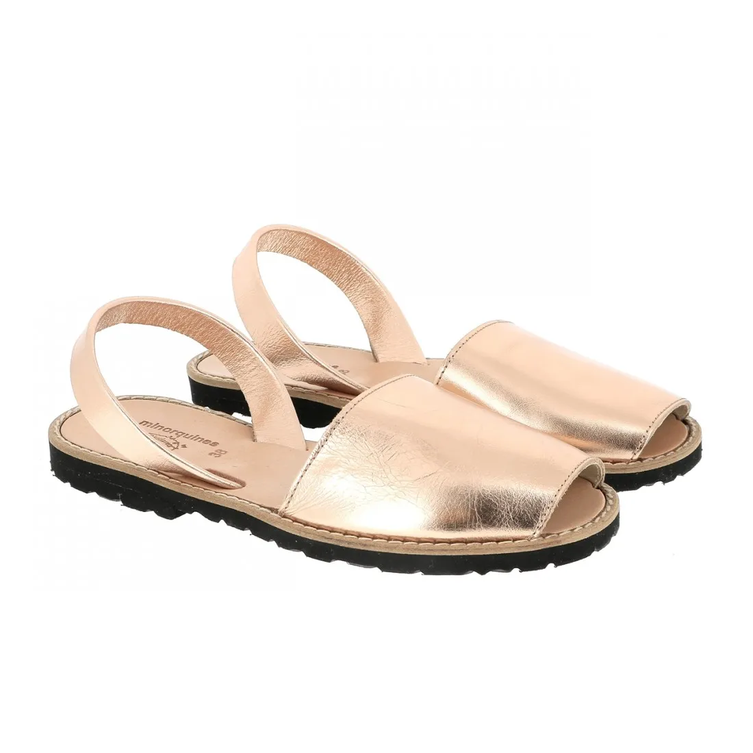 Кожаные женские сандалии Миноркин золотисто-розового цвета Лосось, из натуральной мягкой кожи наппа. Изысканная и стильная летняя обувь на плоской подошве.