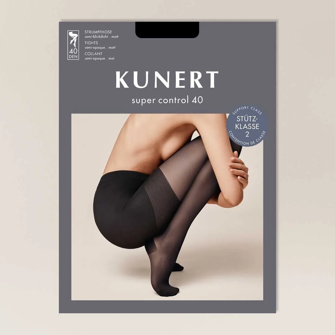 Компрессионные прозрачные колготки 40 ден Кунерт Супер Контрол бежевого цвета кашемир степень коррекции 2 - Kunert Super Control 40 110333500 - 0540 cashmere. Степень компрессии оптимально уменьшается от лодыжек к бедрам. С эффектом лёгкой утяжки по линии живота и ягодиц.