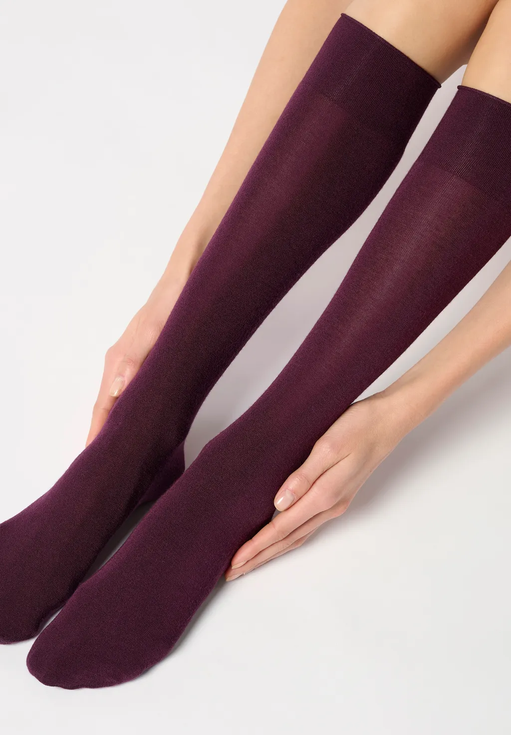 Гольфы Ороблу Шерил с кашемиром тёмно-фиолетового, сливового цвета - Oroblu Cheryl knee-highs VOBFCB11K0 plum 3.