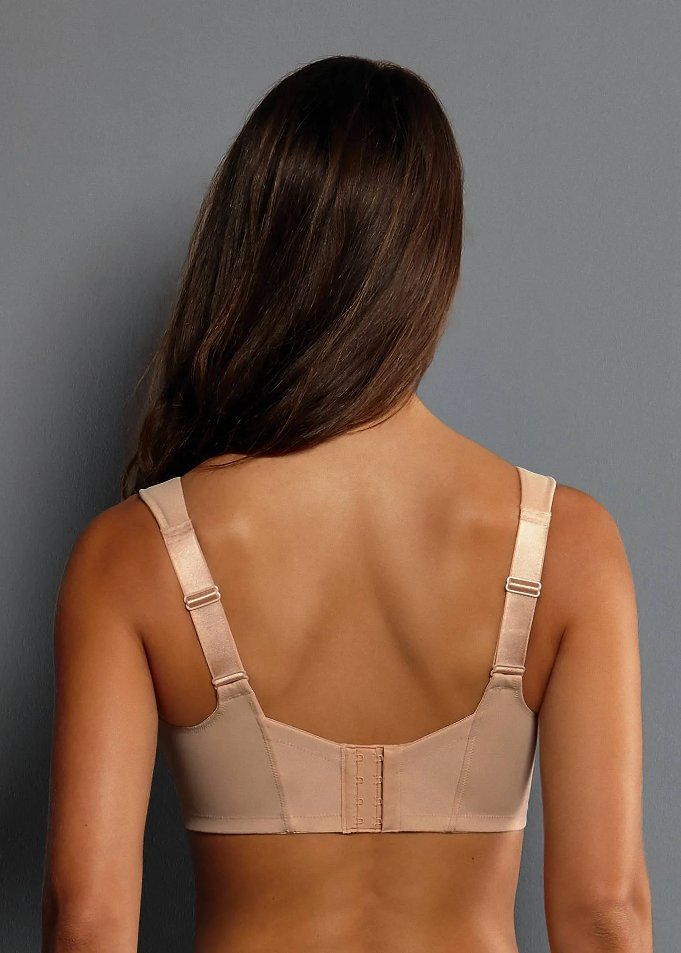 Разгрузочный бюстгальтер с мягкой чашкой без косточек Анита Гаванна песочно-бежевого цвета Anita 5813 - 753. Сложный многосоставной крой чашки обеспечивает максимальную поддержку груди. Сочетание вертикального и горизонтального швов создают красивую, округлую форму. А боковые поддерживающие панели, соединенные с бретелями, направляют грудь вперед и к центру. Нижняя часть чашки и боковой подкрой выполнены из гладкого, шелковистого, непрозрачного материала. Верхняя часть чашки - кружевная, по краю проходит тонкая эластичная окантовка для идеальной посадки.