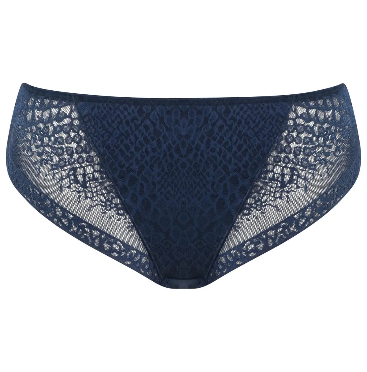 Трусы-бриф Фэнтези Энвизэдж тёмно-синего цвета - Fantasie Envisage High Waist Brief 6915 NAV navy - нави, нэви. Швы деталей плоские, не заметны под одеждой. Край трусиков бесшовный. Сзади - центральный шов, благодаря которому трусы красиво садятся. По линии талии проходит плоский, эластичный пояс-резинка.