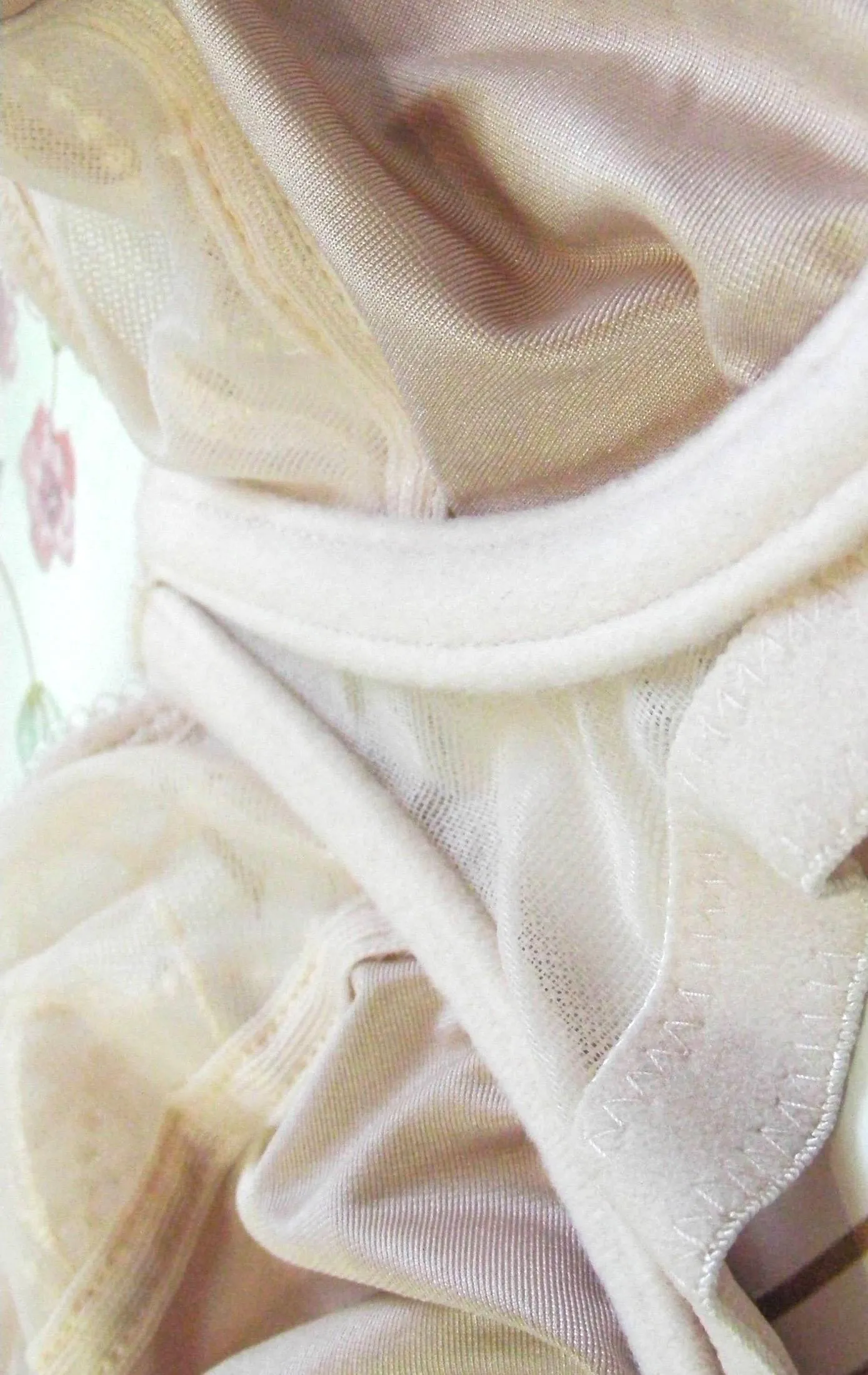 Нижняя часть чашки для дополнительной поддержки выполнена из не эластичного однослойного атласа. Внутри чашек – тонкая мягкая подкладка, очень приятная на ощупь. Центральная вставка между чашками высокая и широкая снизу, она имеет изогнутую форму, что удобно для высокого животика.
