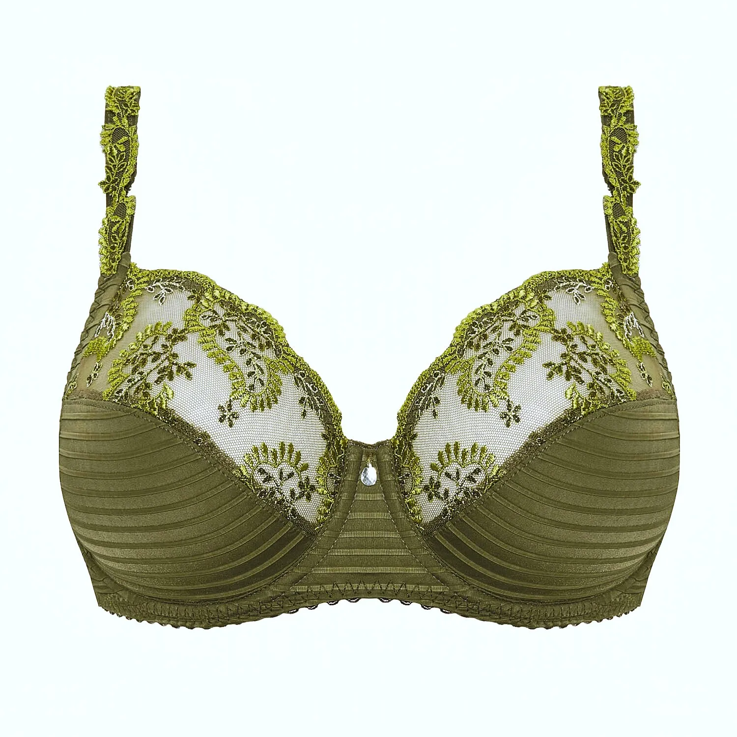 Бюстгальтер с мягкой чашкой на косточках Луиза Брак Элиз оливково-зелёного цвета - Louisa Bracq Elise SG EMBOITANT Full Cup Bra 419 01 OLV olive. Специализированный крой, рассчитанный специально для большой, полной груди. Чашка скроена из трех частей с боковыми поддерживающими панелями. Диагональный шов создает красивый силуэт. Косточки высокие, хорошо прилегают к телу и удерживают пояс, поддерживая грудь.