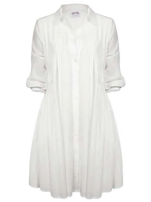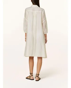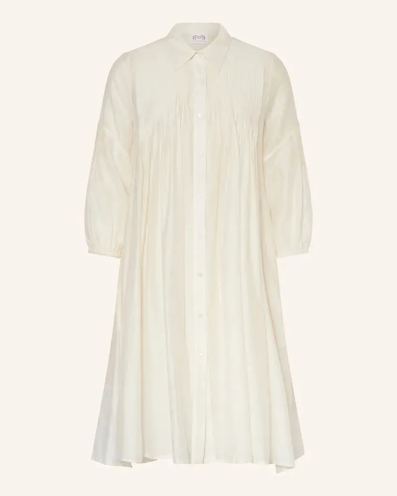 Платье-рубашка Мариан Мельхорн M3114634 молочно-белого, ванильного цвета - Maryan Mehlhorn M3114 634. Выполнено из струящегося о материала. Классический треугольный воротник, застежка на пуговицы до края изделия. А-образный приталенный силуэт с широкой юбкой. Рукава 3/4 на манжетах со сборкой.