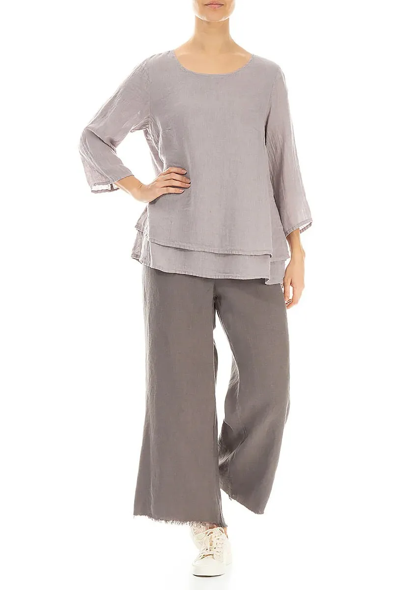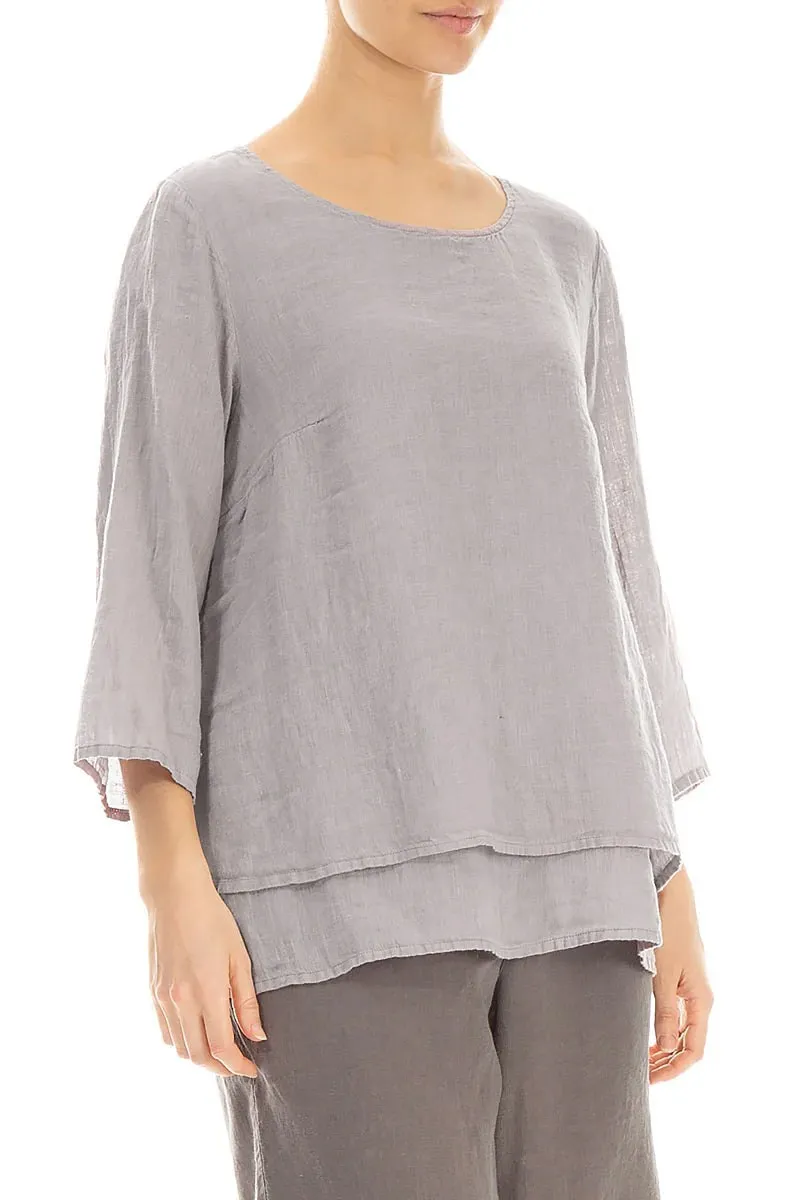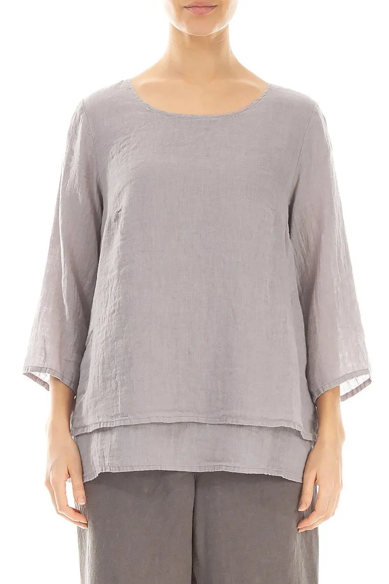 Блуза с рукавом 3/4 из льна-марлевки Гризас светло-серого цвета - Grizas Layered Gauze Linen Blouse 52496/6-L6 299 greige. 100% умягчённый лён.