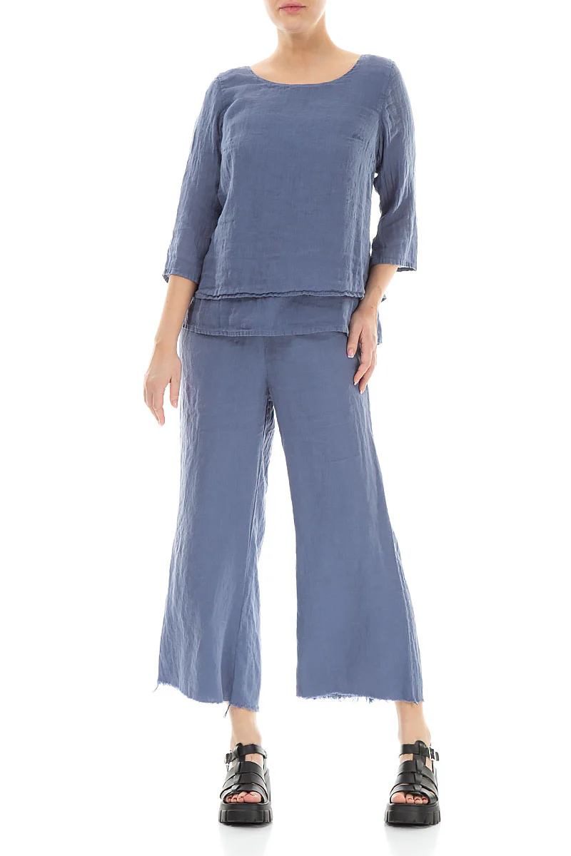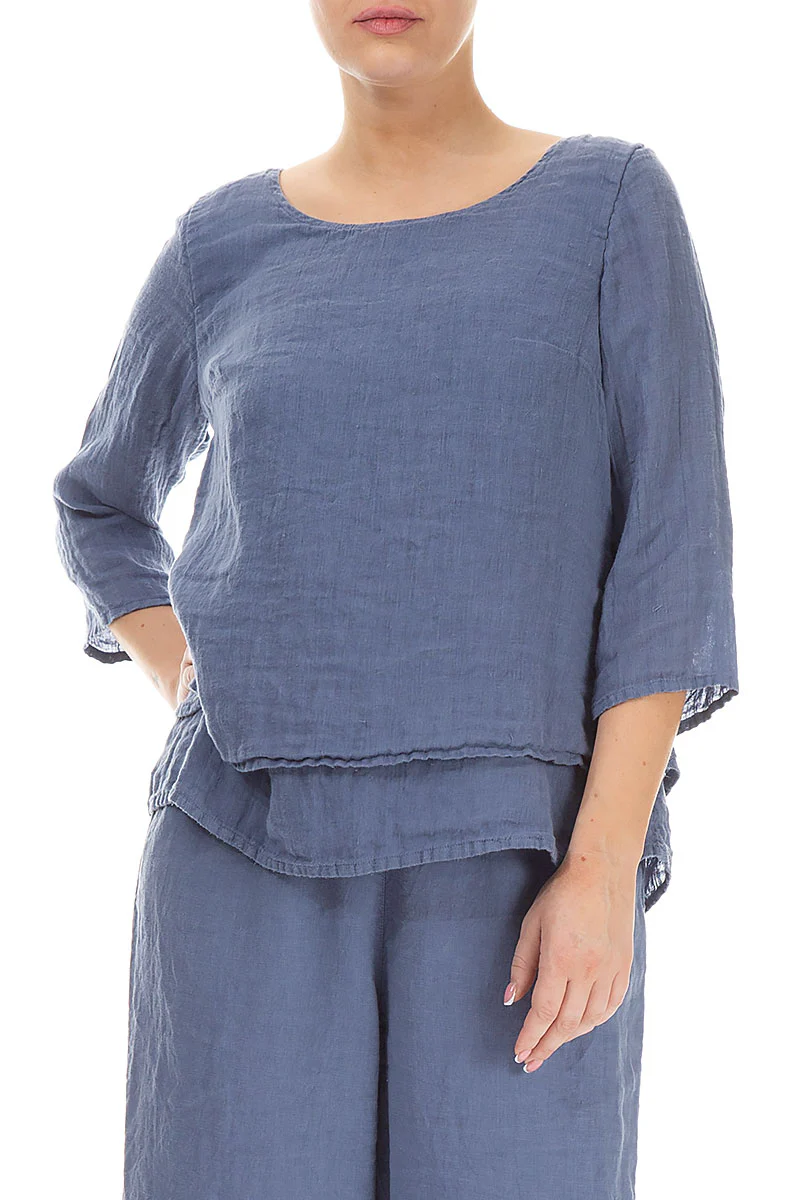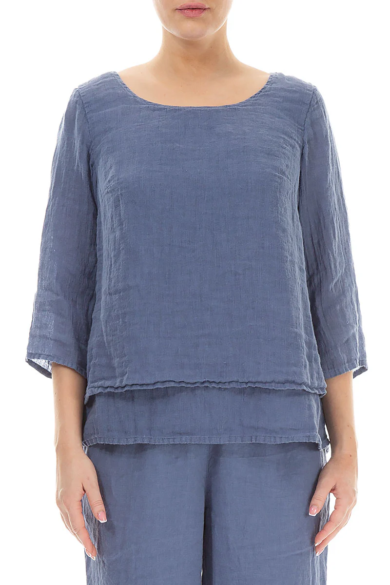 Блуза с рукавом 3/4 из льна-марлевки Гризас сетло-синего, голубого цвета - Grizas Layered Gauze Linen Blouse 52496/6-L6 604 blue nova. 100% умягчённый лён.