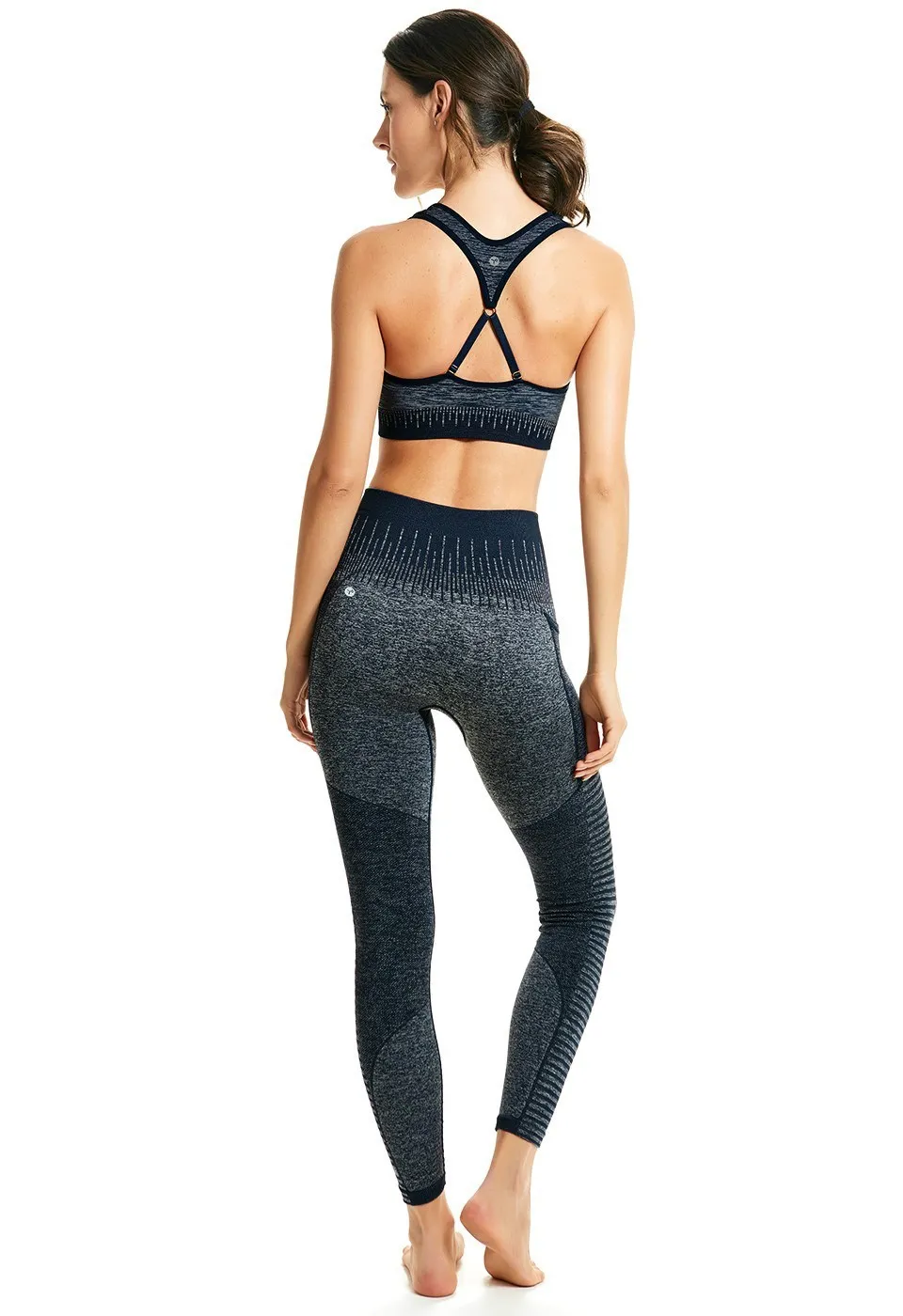 Спортивные женские леггинсы с карманом Плие цвета синий меланж - Plie Legging com Bolso High-waisted pocket leggings 50924 Marinho. С высокой посадкой, закрывают живот. На широком, двойном поясе-резинке, который можно носить с подворотом. Сжатие по бокам усиливает эффект от тренировок. Сбоку - накладной карман.