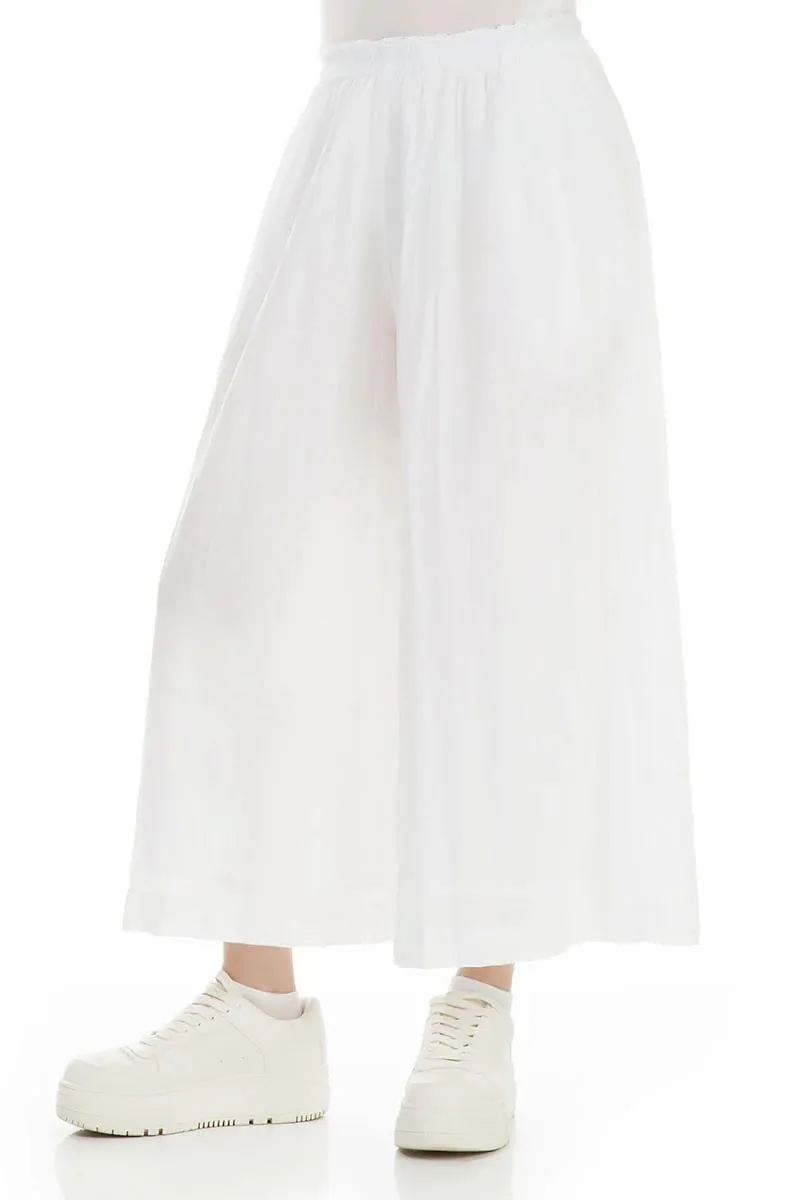 Широкие брюки из жатого хлопка Гризас белого цвета - Grizas Wide Crumpled Cotton Trousers 3819/1-K34 151 white. 100% хлопок.