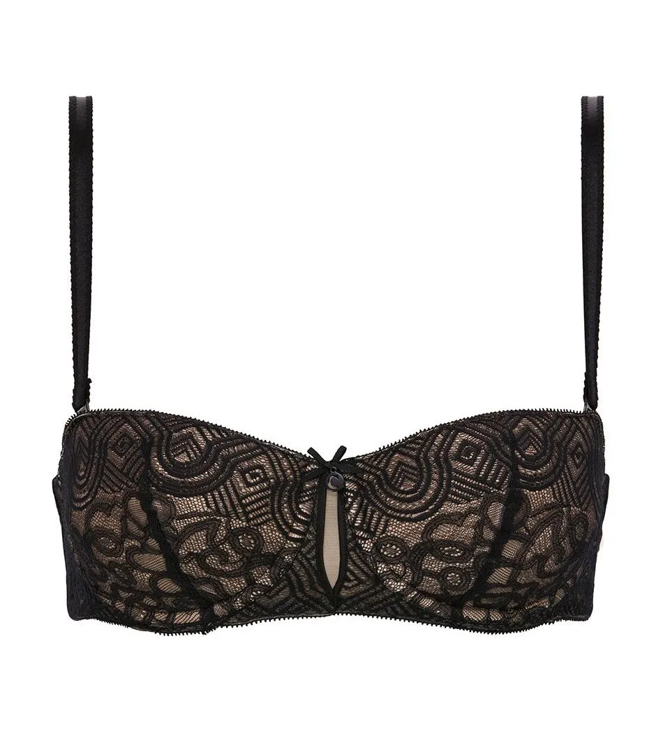 Бюстгальтер-балконет с отстегивающимися бретелями Шантель Солас черного цвета - Chantelle Solace 15B5 011. Плотная чашка на высоких косточках. Внутренний слой светло-бежевый в качестве контрастного фона для эффектного кружева. Чашки с вкладками. Бретели можно полностью отстегнуть, бретели регулируемые. По внутренней стороне пояса проходит силиконовая полоска, надёжно удерживающая пояс на месте.