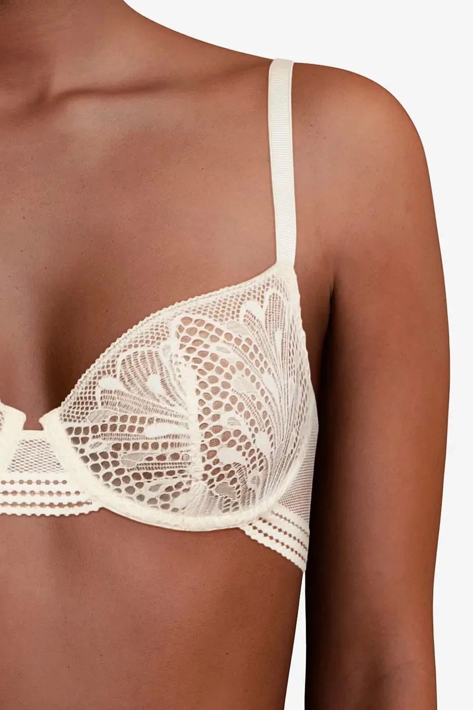 Открытый кружевной бюстгальтер-корбей Пассионата Тельма нежно-бежевого цвета крем-брюле - Passionata Thelma Half-Cup Bra P43H10 Talc 0NL. Мягкая кружевная чашка высоких на косточках с вертикальным швом.