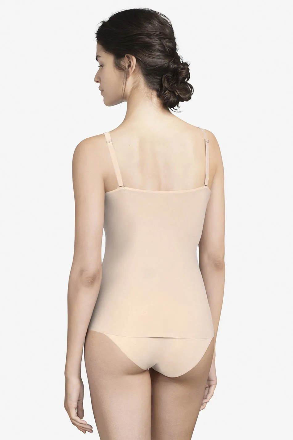 Длинная майка-топ с вшитыми чашками Шантель Софт Стретч - SoftStretch Top à fines bretelles paddées - padded camisole 16A4 0WU телесно-бежевого цвета из мягкой микрофибры. Удобная базовая модель с приталенным силуэтом - хорошо облегает фигуру. Уплотненная, но тонкая чашка. Тонкие бретели с регулировкой длины и специальными креплениями, позволяющими застегивать их крест-накрест. Топ-майка создает ровный, гладкий силуэт, эффект второй кои - абсолютно незаметна под одеждой. Края изделия имеют специальную ультраплоскую обработку.