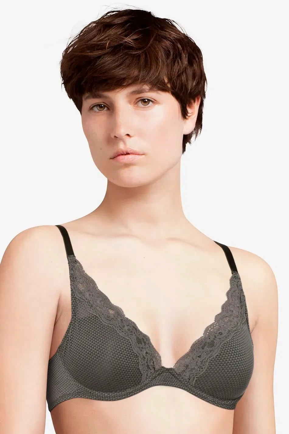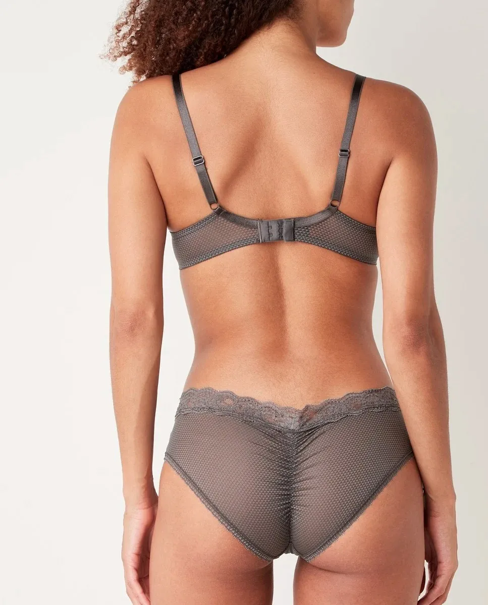 Бюстгальтер-тишот планж Пассионата Бруклин с уплотненными чашками и кружевными "шторками" серого цвета - Brooklyn Plunging T-Shirt Bra P57010 0MX Smoky Grey. Такая модель прекрасно садится на разные формы груди.