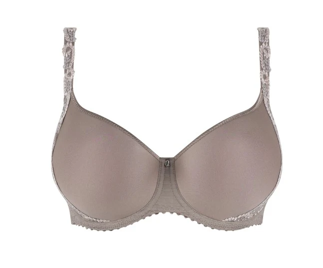 Бюстгальтер-спейсер с уплотненной чашкой на косточках Луиза Брак Элиз тёмно-бежевого цвета тауп - Louisa Bracq Elise SG SPACER Bra 419 06 TPE taupe. Тонкая дышащая чашка. Высокие косточки хорошо поддерживают грудь. Пояс впереди - арочной формы, такая конструкция снижает давление на живот. Аппликация на бретелях предотвращает лишнее растяжение, что особенно актуально для большой груди.