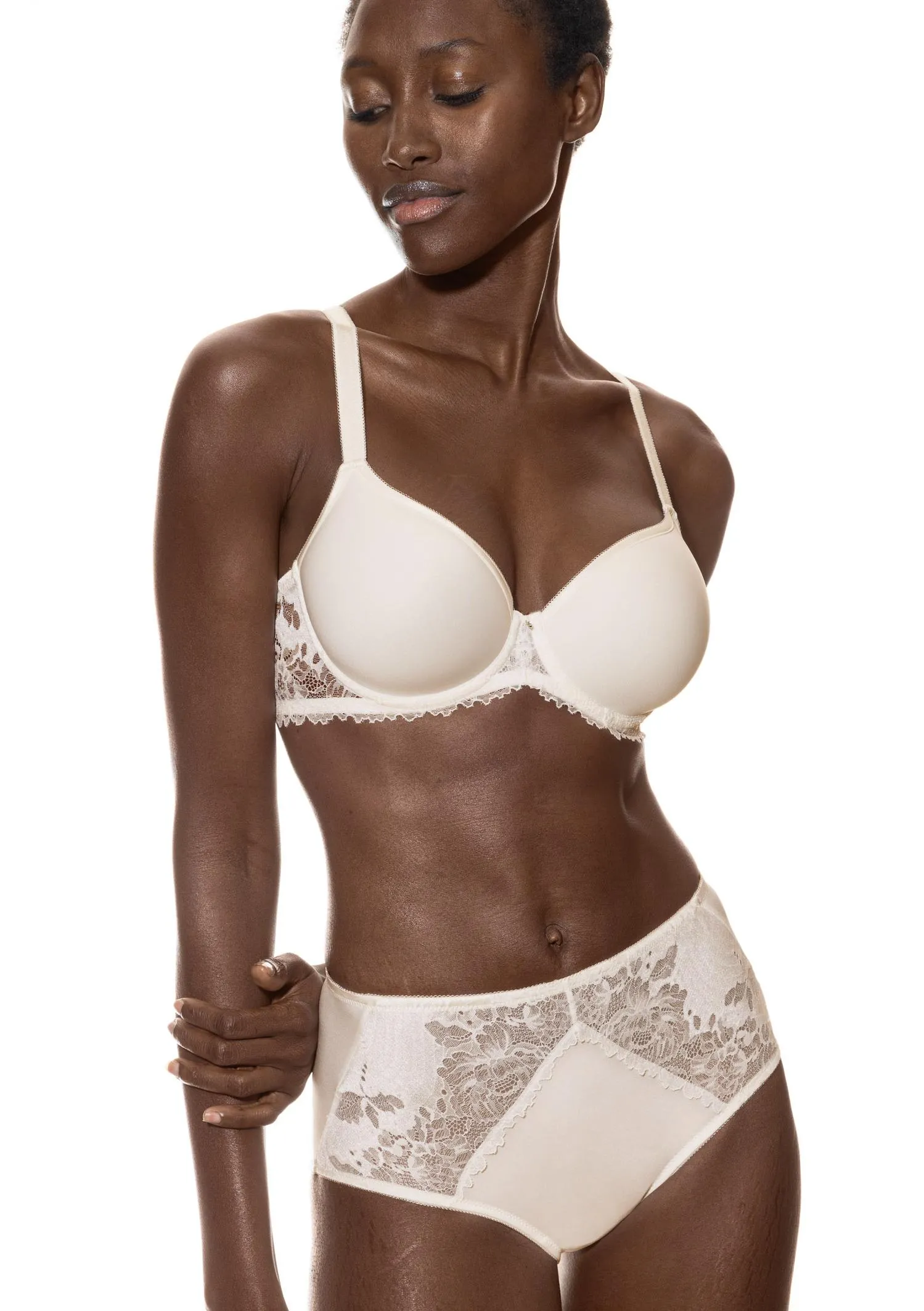 Бюстгальтер-спейсер Мэй Лакшериос с тишот чашкой ванильного цвета шампанское - Mey Luxurious full cup spacer bra Luxurious 74285 5 Champagner. Благодаря инновационному материалу чашка легко пропускает воздух, достаточно тонкая, но при этом сохраняет форму и создает гладкий силуэт. Косточки с закруглениями, надежно вшиты, не выскакивают. Эффектный кружевной пояс. Бретели с регулировкой длины, текстура резинки предотвращает соскальзывание креплений фурнитуры.