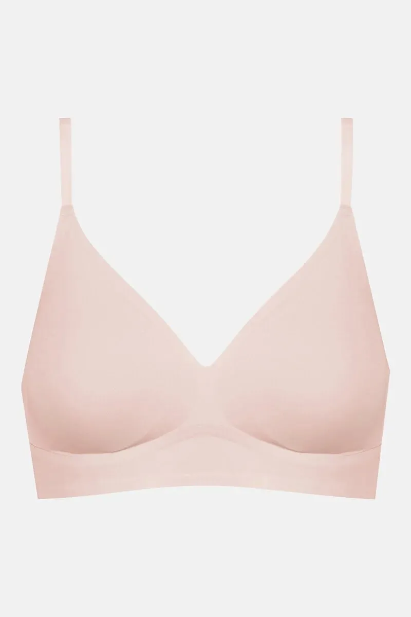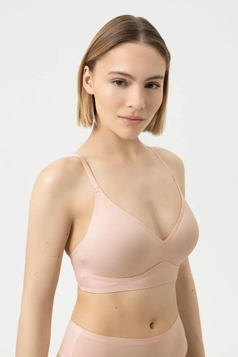 Топ треугольники со съемной чашкой Мей Симпли Беттер Инвизиблс нежно-розового цвета жемчуг - Mey Simply Better Invisibles triangle bra 1150030 - 38 blossom. Бесшовная чашка без косточек с тонкими съемными вкладышами. Поддержка груди - за счет полочки, образованной бесшовным соединением чашки с поясом. Бретели-трансформер - перестегиваются крест-накрест. Выполнен из нежного эластичного материала с эффектом "второй кожи".