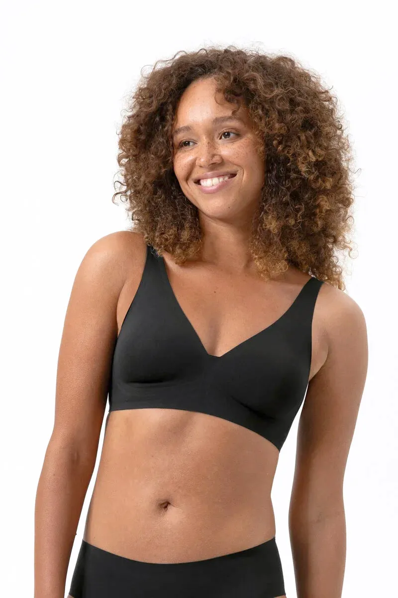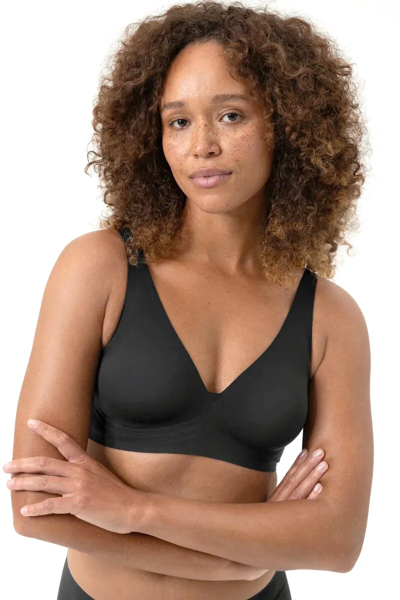 Бесшовный топ треугольники Мей Инвизибл чёрного цвета - Mey Simply Better Invisibles triangle bra 1150029 - 3 Schwarz. Мягкая бесшовная чашка без косточек с текстурной поддержкой из силиконовых линий. Бретели-трансформер - перестегиваются крест-накрест. Выполнен из нежного эластичного материала с эффектом "второй кожи".