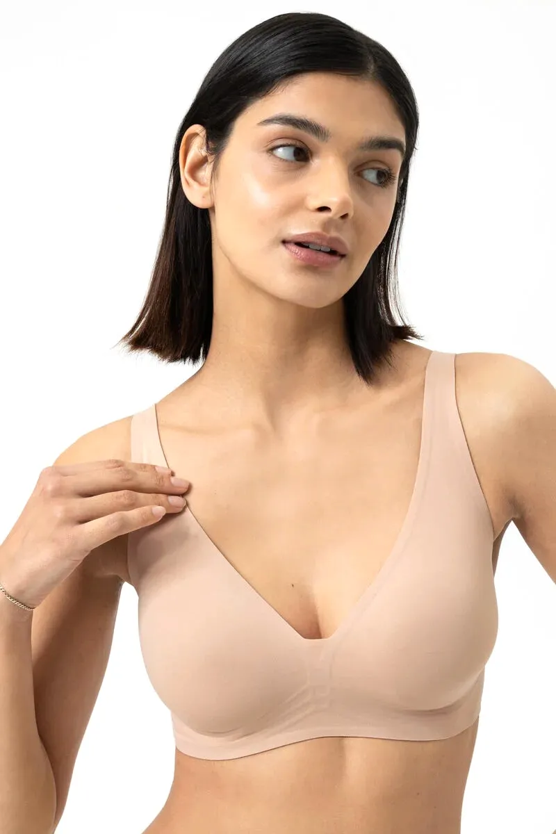 Бесшовный топ треугольники Мей Инвизибл бежевого цвета крем тан - Mey Simply Better Invisibles triangle bra 1150029 - 376 Cream Tan. Мягкая бесшовная чашка без косточек с текстурной поддержкой из силиконовых линий. Бретели-трансформер - перестегиваются крест-накрест. Выполнен из нежного эластичного материала с эффектом "второй кожи".