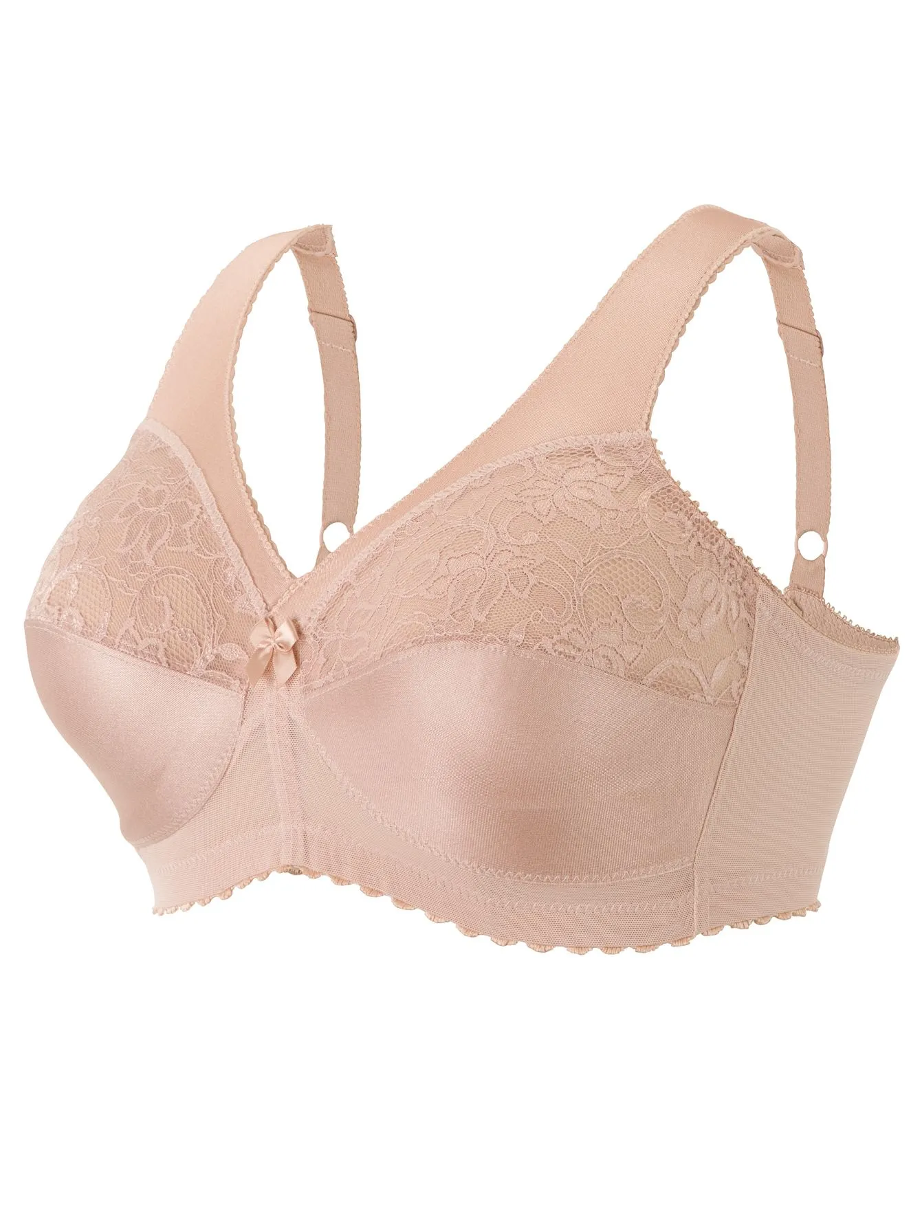 Эта модель бюстгальтера 1000 - бестселлер Glamorise - бюстгальтер большого размера без косточек, телесно-бежевого цвета пудра. Комфортная бескаркасная поддержка, снижение нагрузки на плечи и позвоночник! Бюстгальтер сконструирован по запатентованной технологии MagicLift.