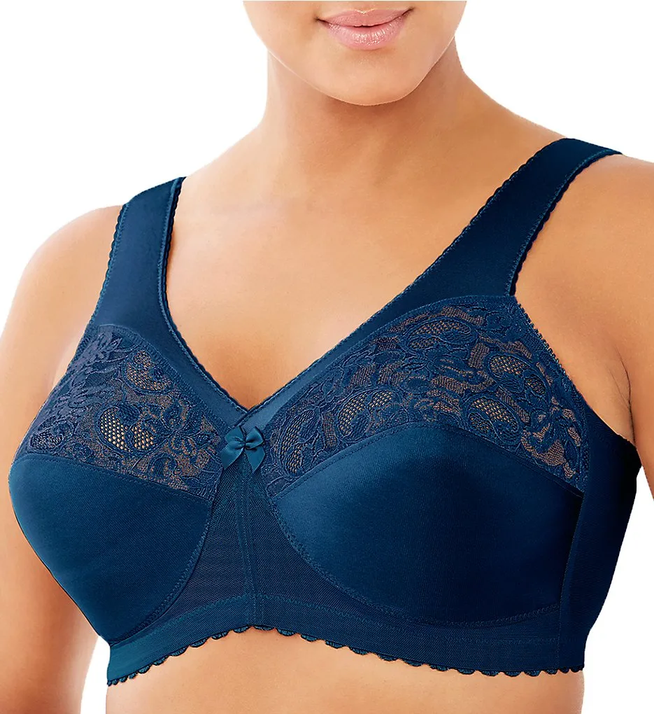 Эта модель бюстгальтера 1000 - бестселлер Glamorise - бюстгальтер большого размера без косточек, темно-синего цвета. Комфортная бескаркасная поддержка, снижение нагрузки на плечи и позвоночник! Бюстгальтер сконструирован по запатентованной технологии MagicLift.