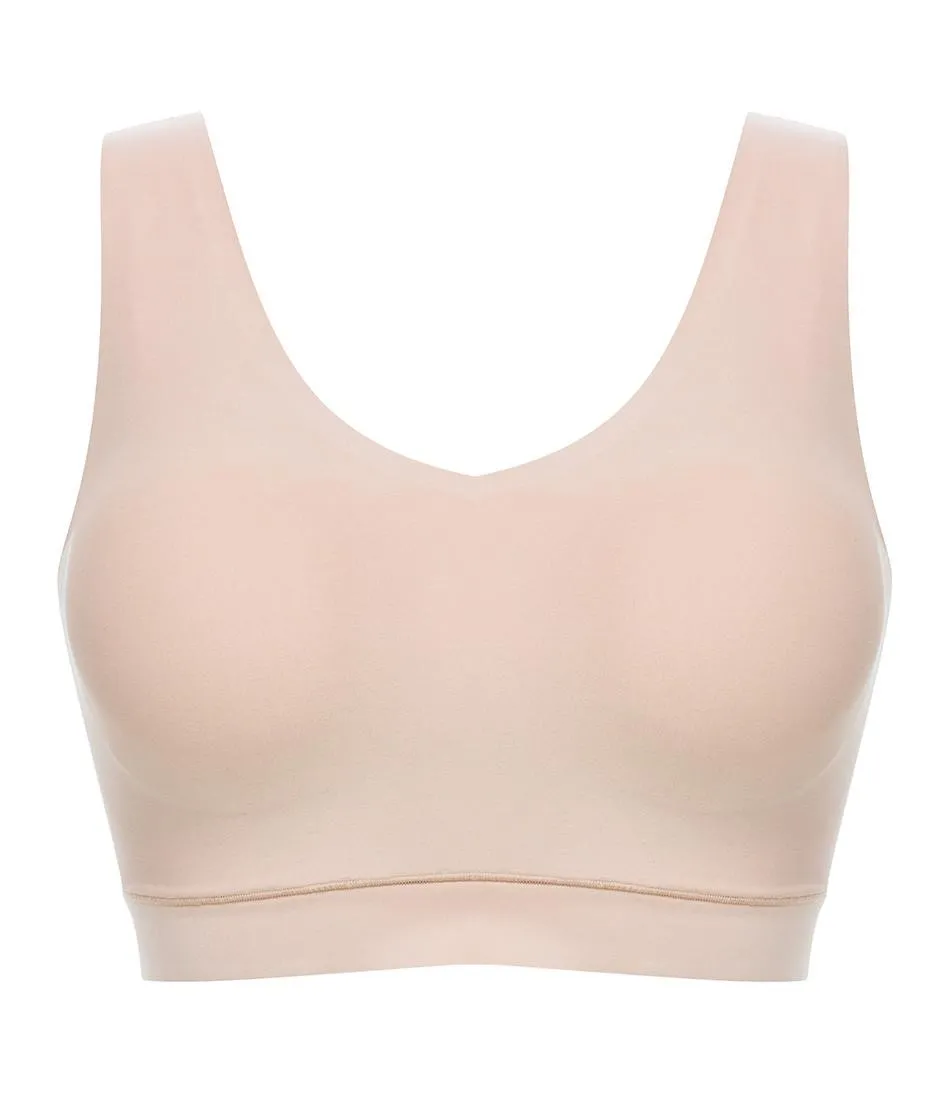 Топ с уплотненной чашкой, без косточек Шантель Софт Стретч - SoftStretch Padded V-Neck Bra Top натурального, телесно-бежевого цвета. Удобная базовая модель. Чашки аккуратно вшиты между двумя слоями мягкой, эластичной ткани. Чашки не сдвигаются и не нуждаются в регулировке.