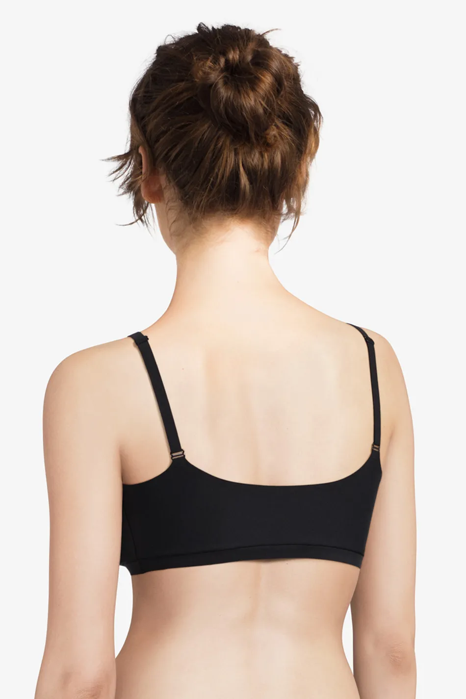 Топ на узких бретелях с уплотненной чашкой, без косточек Шантель Софт Стретч - Chantelle SoftStretch Brassière à coques paddées черного цвета. Удобная базовая модель. Чашки аккуратно вшиты между двумя слоями мягкой, эластичной ткани. Чашки не сдвигаются и не нуждаются в регулировке.