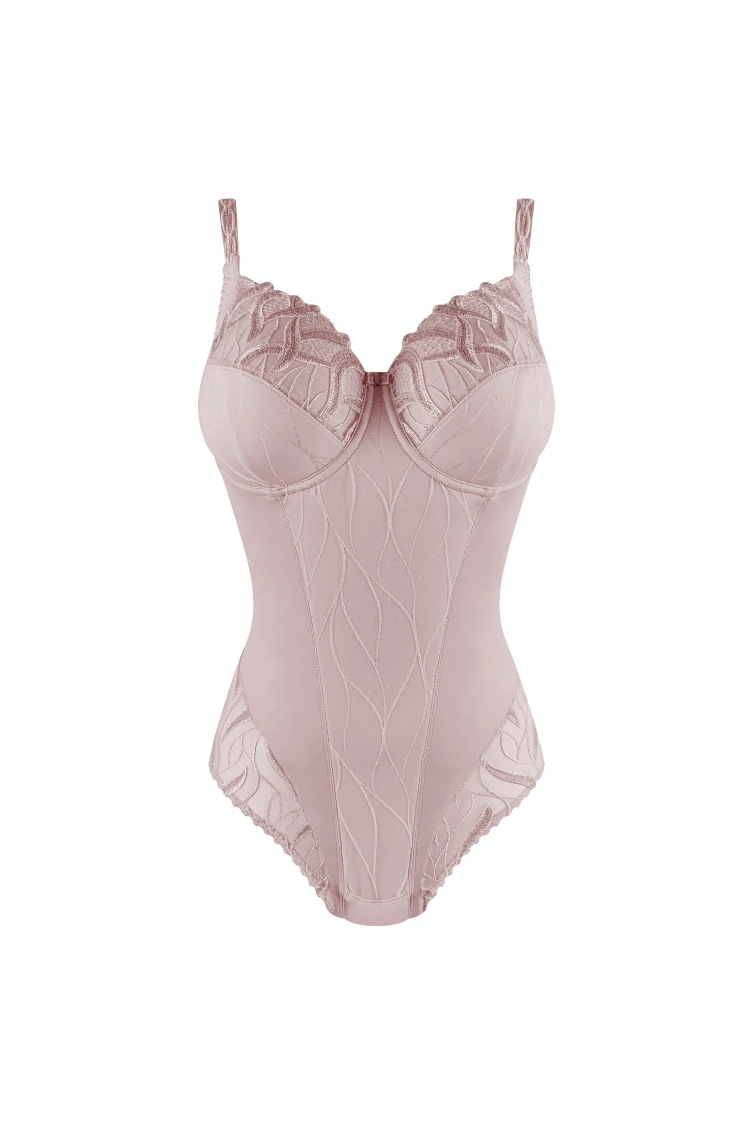 Боди с мягкой чашкой на косточках Луиза Брак Джулия кофейно-бежевого цвета тауп - Louisa Bracq Julia BODY EMBOITANT FULL-CUP BODY taupe 477 90 TPE. Верх с классической трехчастной чашкой рассчитанной специально для большой груди. Сочетание диагонального и вертикального швов создает естественную, округлую форму.