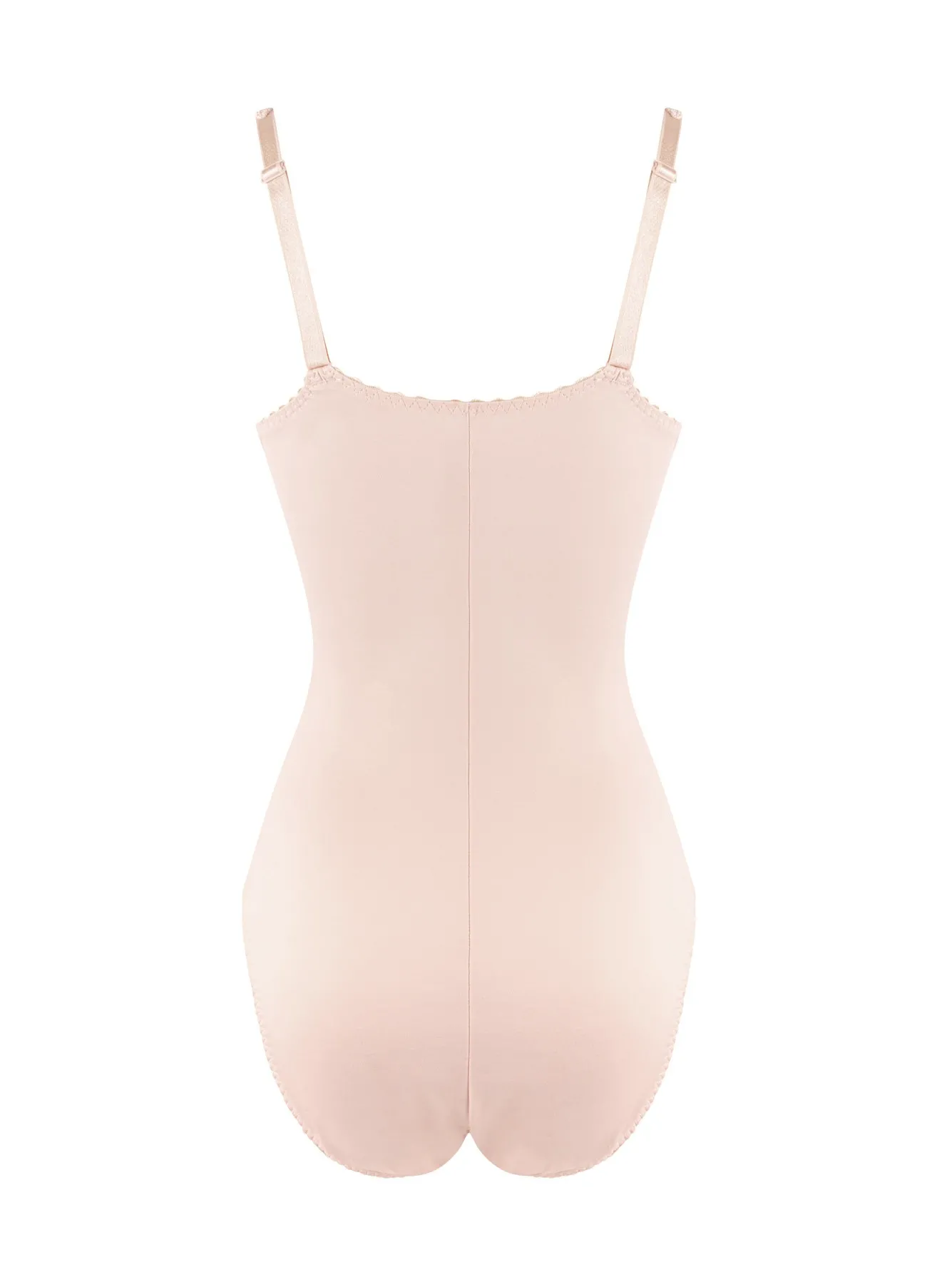 Центральная часть боди из более плотной текстурированной ткани. По бокам и сзади - гладкая ткань. Вертикальные швы подчеркивают стройность фигуры.