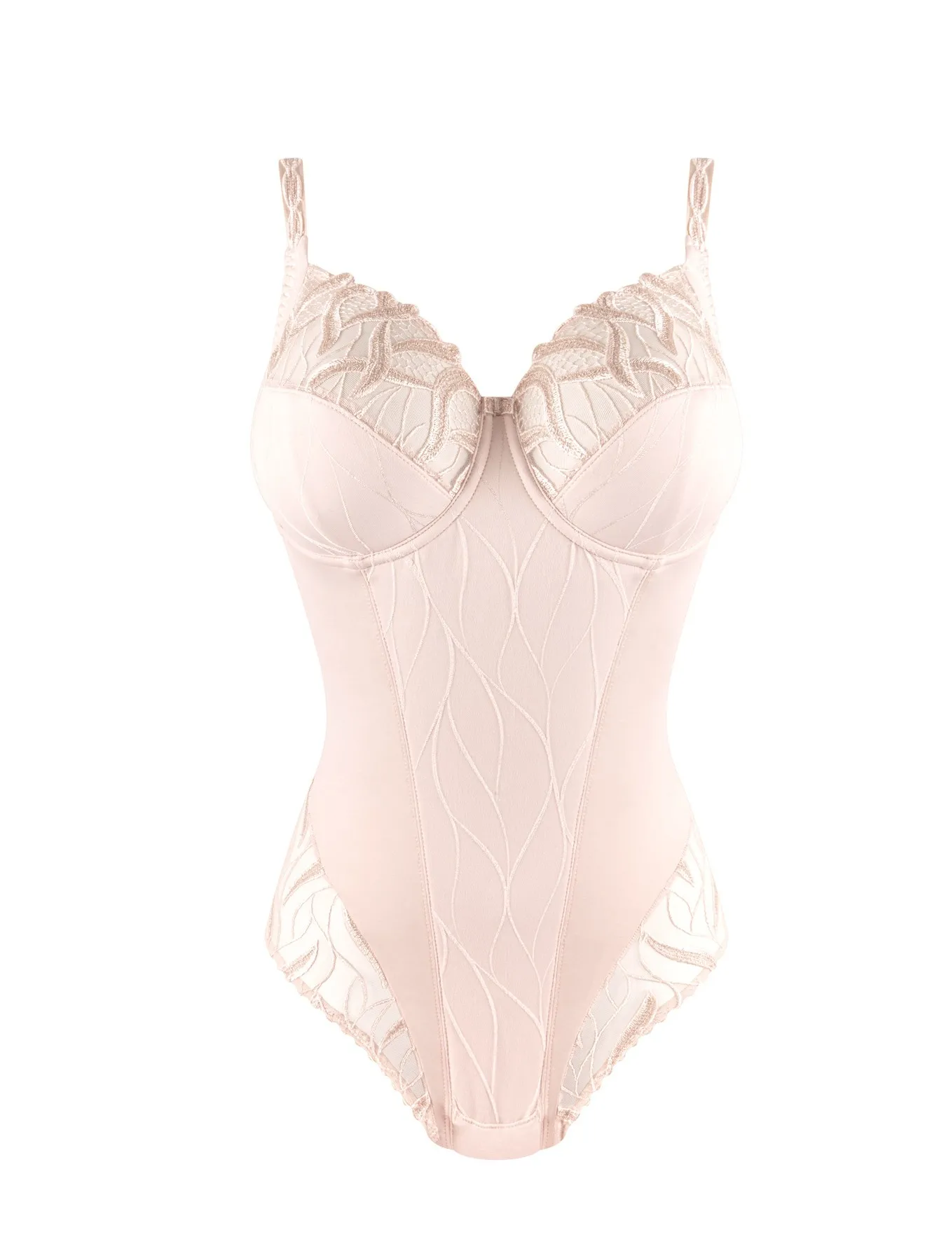 Боди с мягкой чашкой на косточках Луиза Брак Джулия натурального, молочно-белого цвета - Louisa Bracq Julia BODY EMBOITANT FULL-CUP BODY nacre 477 90 NCR. Верх с классической трехчастной чашкой рассчитанной специально для большой груди. Сочетание диагонального и вертикального швов создает естественную, округлую форму.