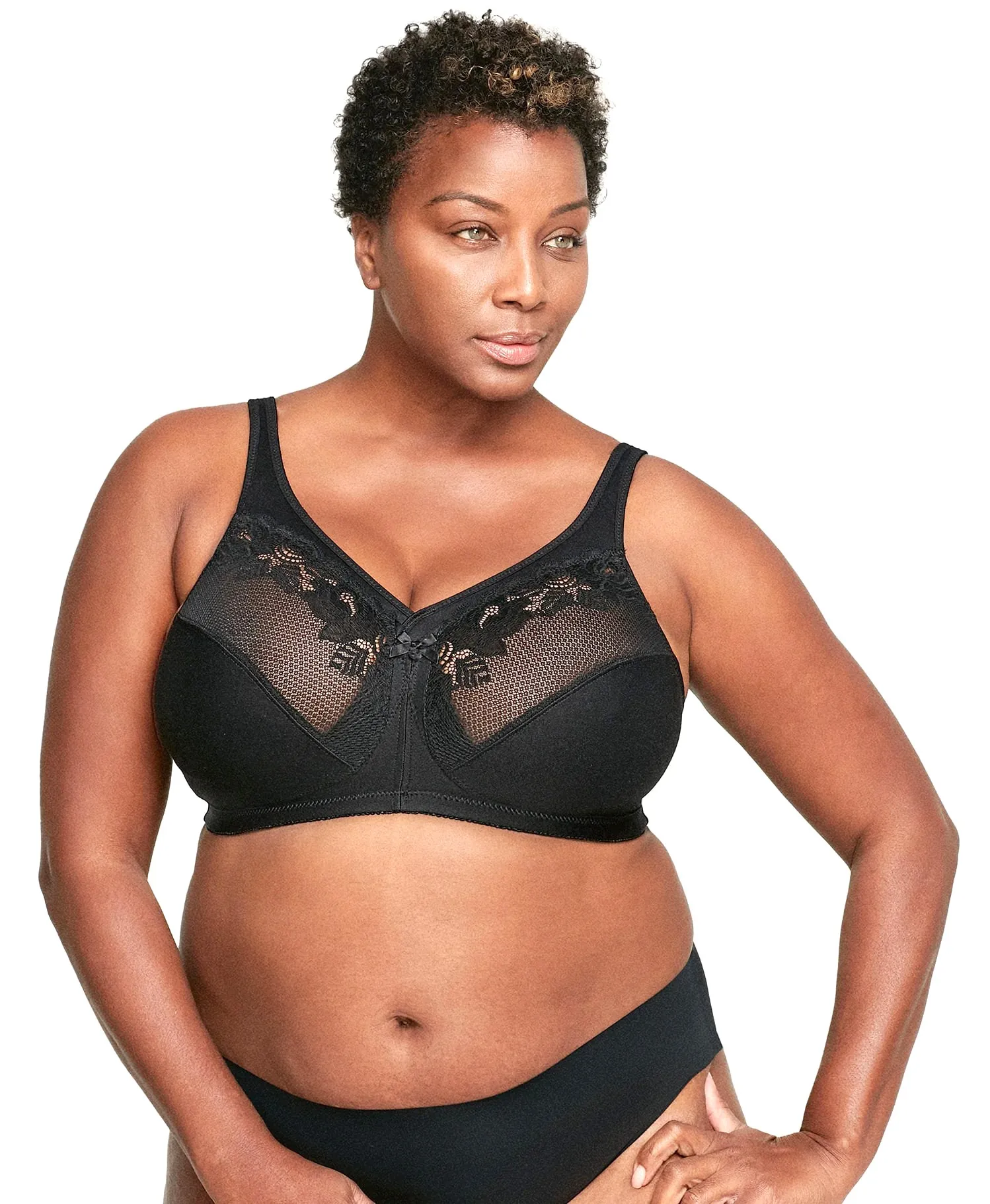Бюстгальтер-минимайзер Гламорайз большого размера без косточек, черного цвета - Glamorise MagicLift Minimizer Bra 1003 black. Комфортная бескаркасная поддержка, снижение нагрузки на плечи и позвоночник! Бюстгальтер сконструирован по запатентованной технологии MagicLift.