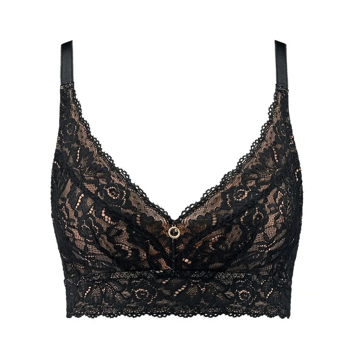 Бюстгальтер бралет с треугольной чашкой Обад Роузсенс черного цвета - Aubade Rosessence 2K22 2K . Элегантное цветочное кружево на тонкой подложке золотисто-бежевого цвета. Великолепное швейцарское кружево. Мягкая чашка без косточек. Чашка закрытая, треугольная. Чашка многослойная, внутри вшитые поддерживающие панели для поддержки красивой формы. Диагональный шов создает красивую форму. Глубокое декольте украшено кристаллом Сваровски Swarovski®.