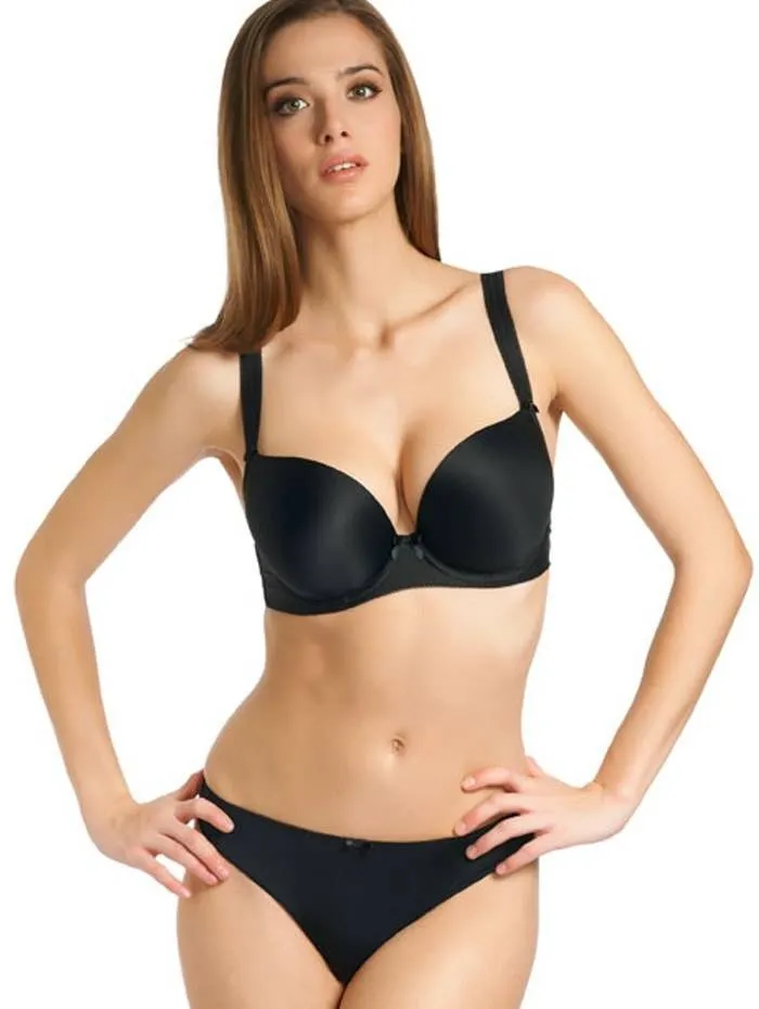 Бесшовный бюстгальтер ти-шот для большой груди Фрея Деко черный. Чашки формованные (поролон), обеспечивают хорошую поддержку и подъем груди, создают красивую округлую форму. Бюстгальтер создает красивый силуэт, одежда на нем смотрится великолепно! Чашки полузакрытые, но с глубоким и выразительным вырезом декольте. Косточки аккуратно вшиты в плотный отсек, они не прокалывают ткань и не вылезают наружу. Верхний край чашки гладкий, ровный без окантовки. Такая конструкция требует более бережного и деликатного ухода, чем модели с окантовкой по краю чашки.