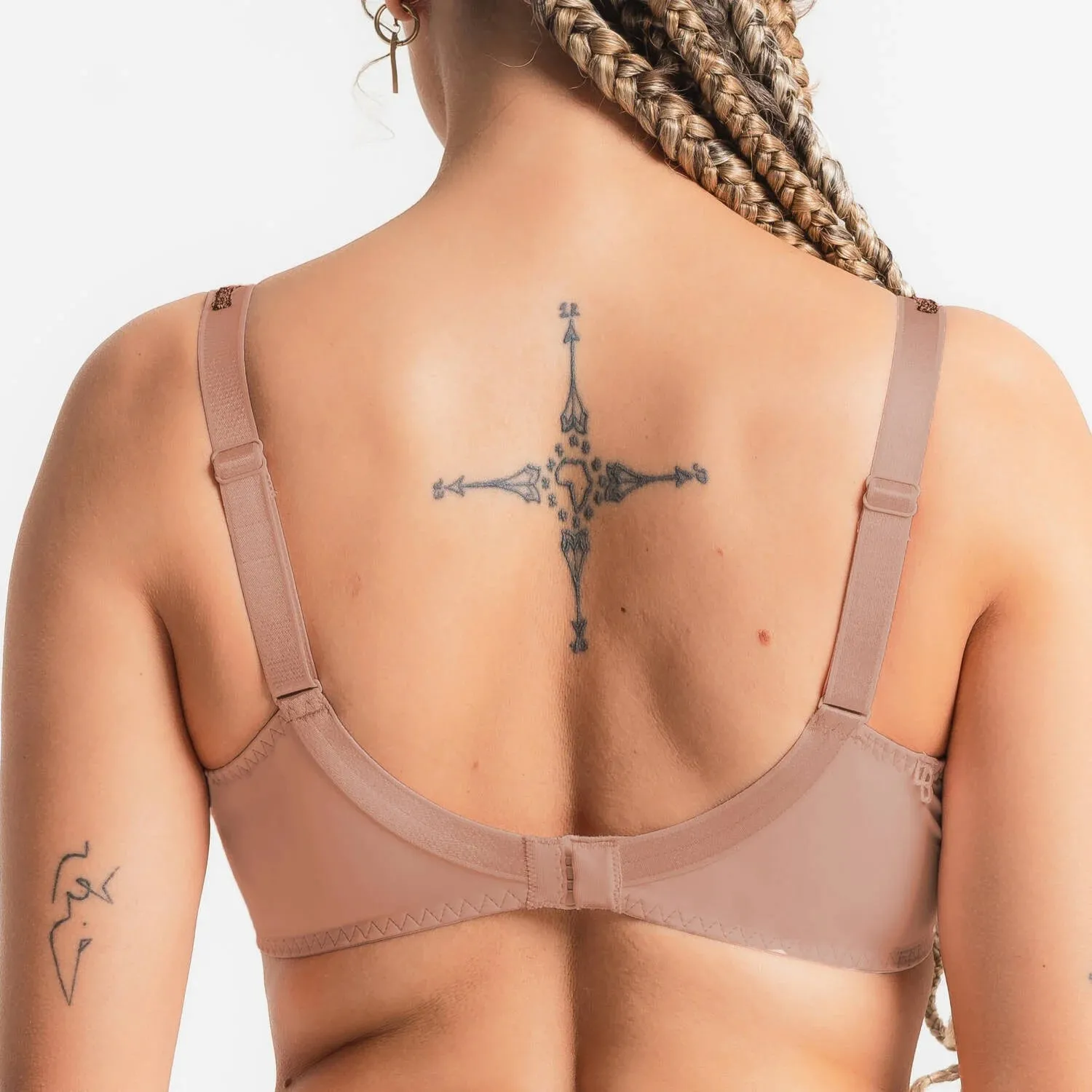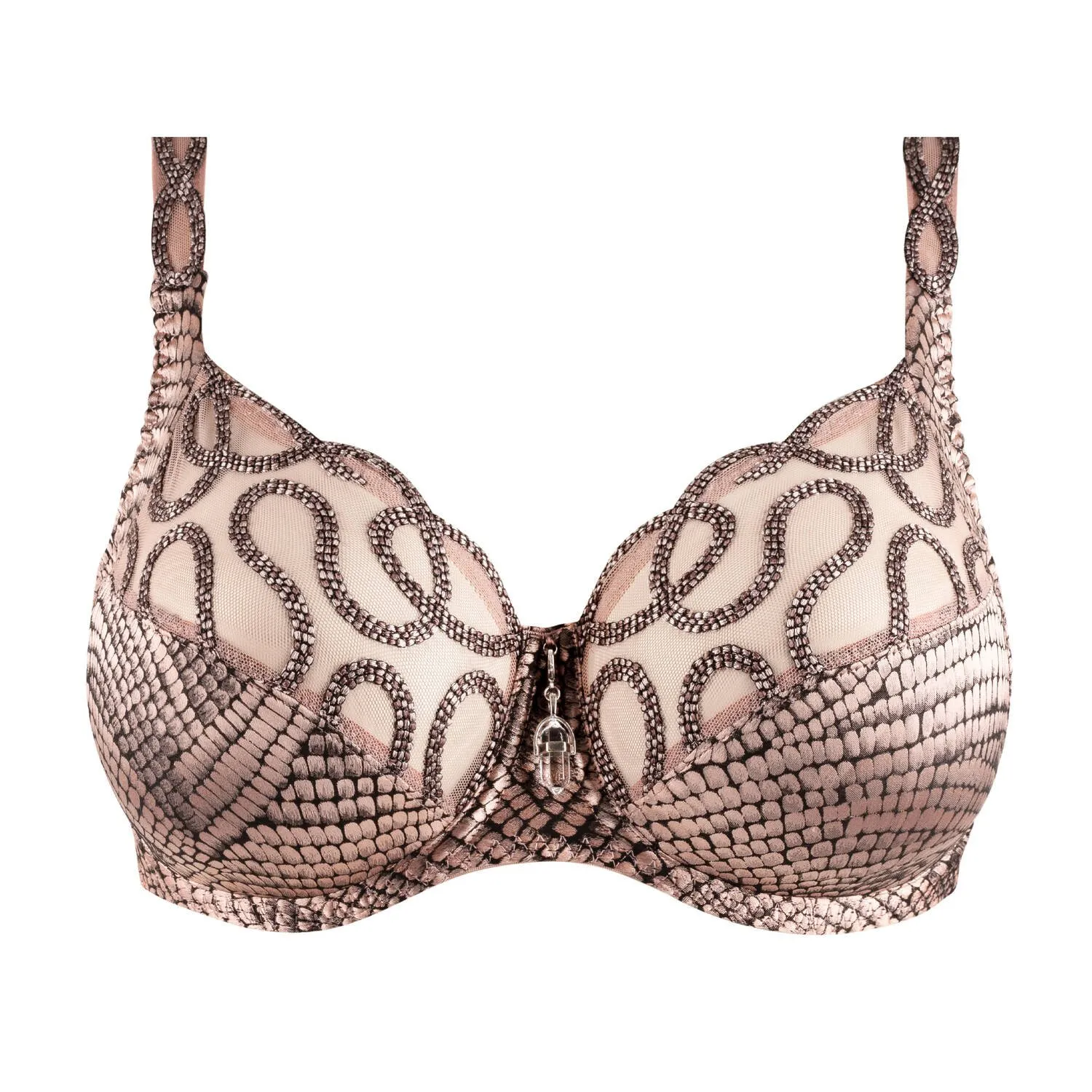 Бюстгальтер Луиза Брак с принтом Рептилия розово-бежевого цвета - Louisa Bracq Divine SG Emboitant Full cup Bra 482 01 STL santal. Красивое сочетание шелковистой непрозрачной ткани с жаккардовой фактурой и кружева с перламутровой мозаичной вышивкой и змеевидным узором. 6% натурального шёлка в составе.
