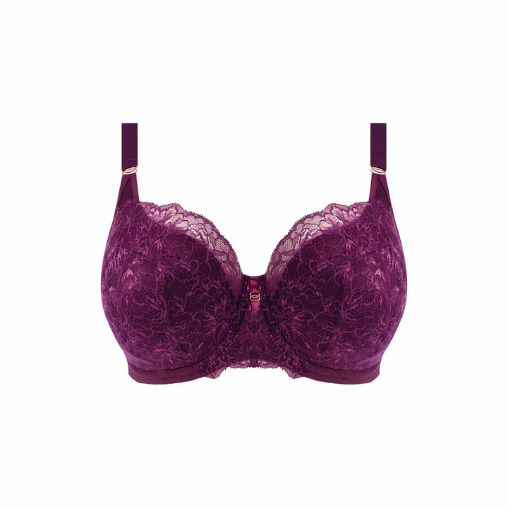 Бюстгальтер большого размера Эломи Брианна с открытой плотной чашкой на косточках, бордового цвета - Elomi Brianna Padded Balconette Bra 8081 BLY blackberry. Эффектная кружевная модель plus size. Плотная чашка украшена кружевом с цветочными мотивами.