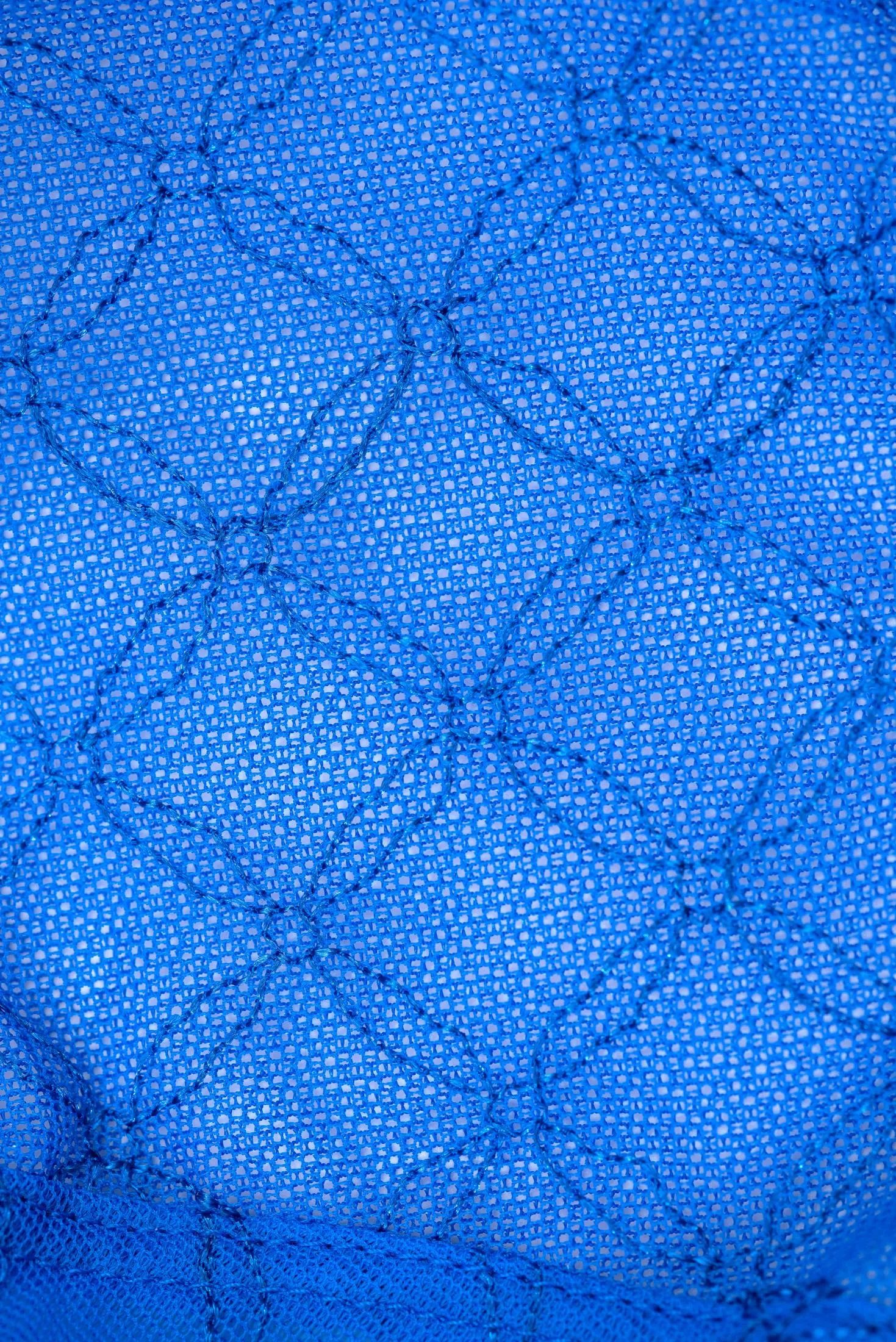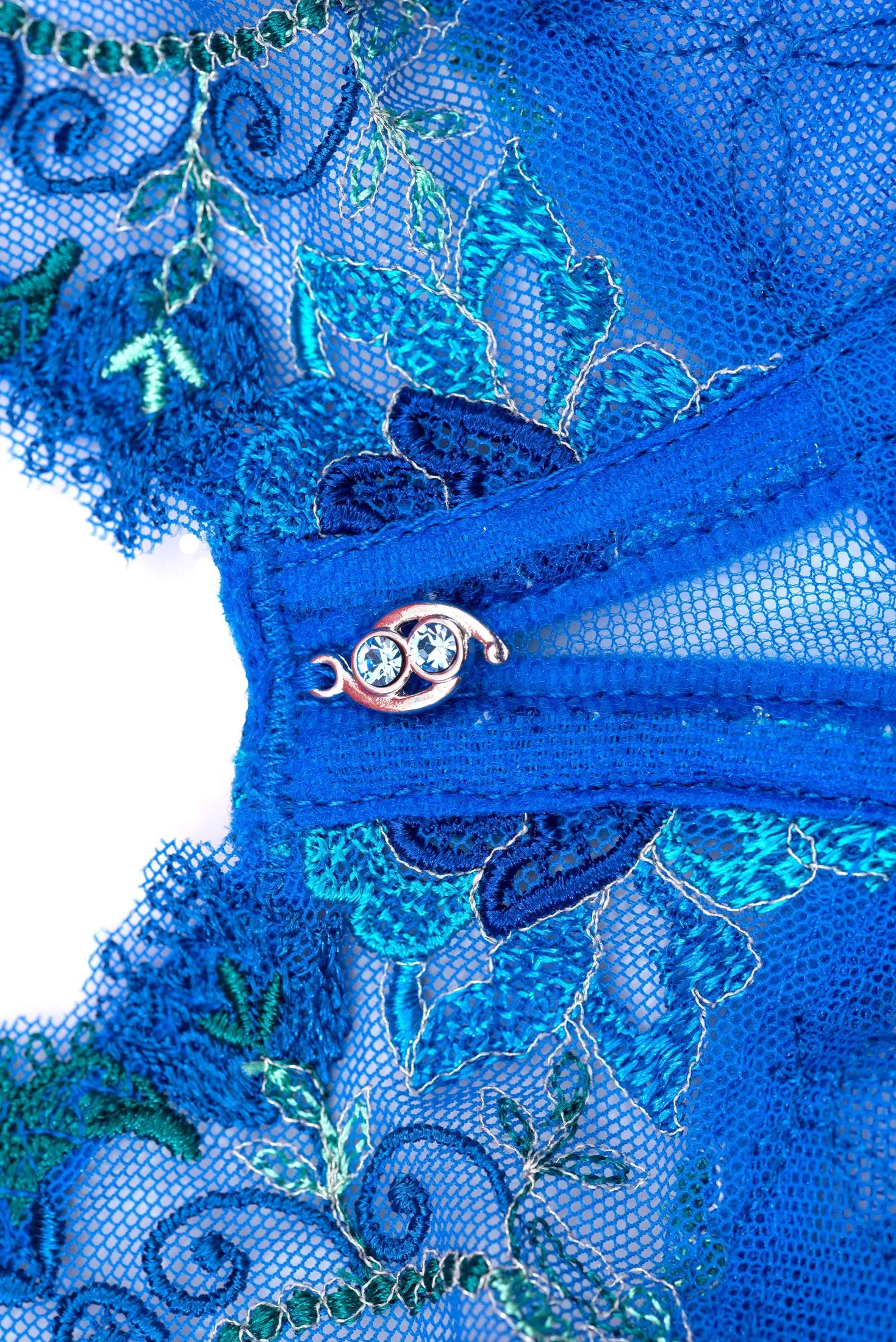 Нижняя часть чашки и боковой подкрой выполнены из многослойной поддерживающей сеточки с однотонной вышивкой, верхняя часть - прозрачная с вышивкой. По верхнему краю чашки проходит эластичная окантовка для лучшей посадки.
