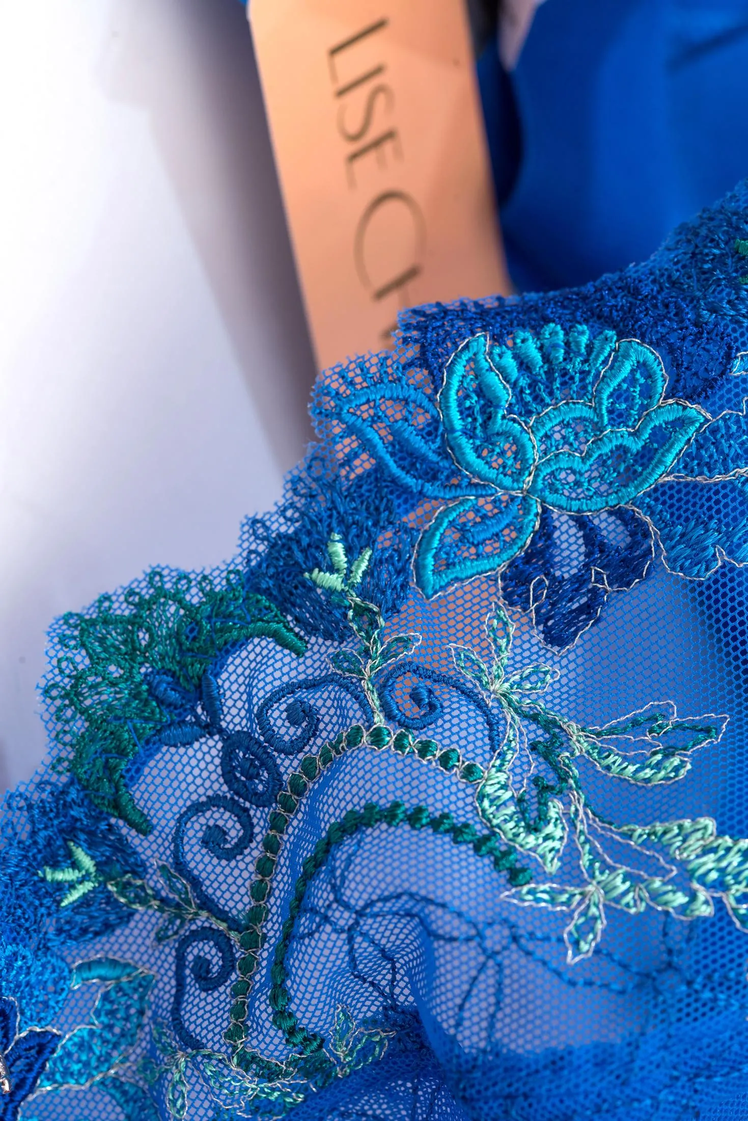 Закрытый бюстгальтер с мягкой чашкой на косточках Лиз Шармель H60 ярко-синего цвета кристалл - Lise Charmel H60 3 Parts Full Cup BCH 6160 5281 onde cristal / crystal. Классическая трехчастная чашка с боковыми поддерживающими панелями приподнимает грудь и направляет ее к центру, создавая красивую естественную форму. Высокие косточки хорошо обхватывают и разделяют грудь. Классический пояс арочной формы и классические бретели, усиленные кружевной аппликацией, предотвращающей растяжение - создается дополнительная поддержка и подъем груди.