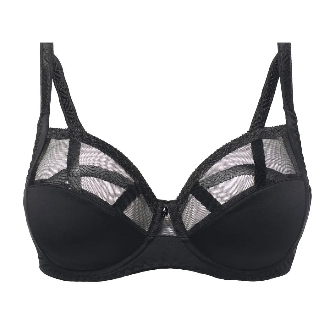 Бюстгальтер с мягкой чашкой на косточках Луиза Брак Сэри черного цвета - Louisa Bracq Serie full cup bra 471 01 NR0. Классическая трехчастная конструкция чашки создает красивую форму груди, боковые поддерживающие панели направляют грудь вперед. Нижняя часть выполнена из непрозрачной ткани, которая хорошо держит форму. Верхняя - часть из тонкой эластичной сеточки с вышивкой. Эффектные двойные бретели создают игривый треугольник и функционально распределяют вес.