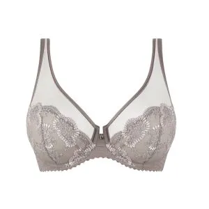 Закрытый прозрачный бюстгальтер на косточках Луиза Брак Элиз тёмно-бежевого цвета тауп - Louisa Bracq Elise SG FOULARD SCARF BRA 419 11 TPE taupe. Нижняя часть чашки по конструкции близка к балконету, с вертикальным швом, приподнимающим грудь. Украшена вышивкой с цветочными мотивами. Верхняя часть закрытая, с переходом на бретели, выполнена из прозрачной сеточки. По краю чашки проходит эластичная окантовка для идеальной посадки и прилегания. Высокие косточки поддерживают грудь, создавая красивую форму.
