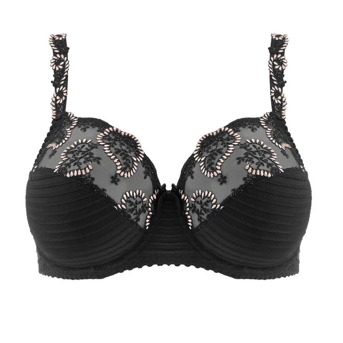 Бюстгальтер с мягкой чашкой на косточках Луиза Брак Элиз чёрного цвета c перламутровыми светлыми акцентами - Louisa Bracq Elise SG EMBOITANT Full Cup Bra rouge baiser 419 01 NBN noir. Специализированный крой, рассчитанный специально для большой, полной груди. Чашка скроена из трех частей с боковыми поддерживающими панелями. Диагональный шов создает красивый силуэт. Косточки высокие, хорошо прилегают к телу и удерживают пояс, поддерживая грудь.