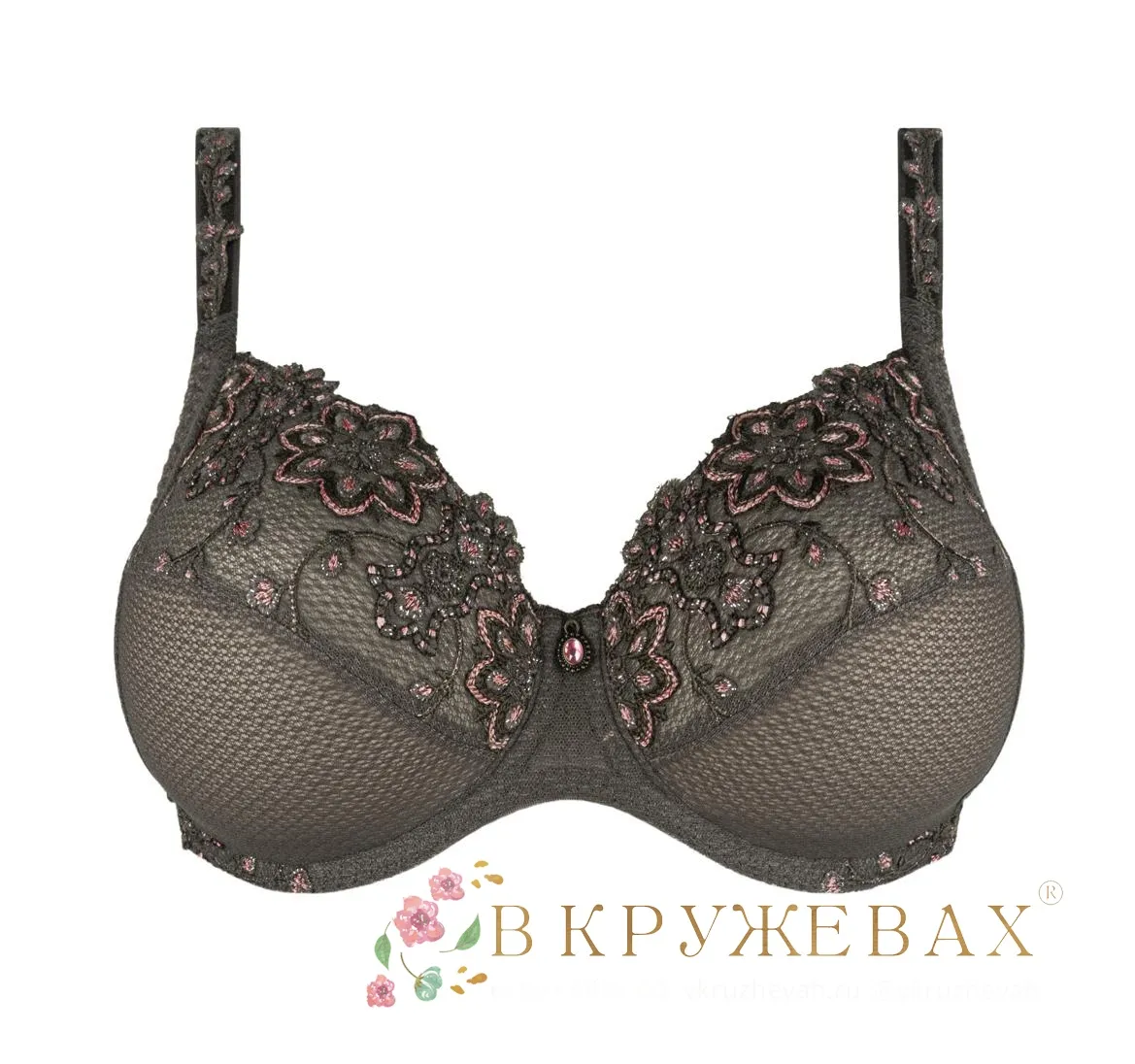 Бюстгальтер с мягкой чашкой на косточках Луиза Брак Матье светло-коричневого цвета бронза / тауп - Louisa Bracq Matyo SG EMBOITANT Full Cup Bra 478 01 BRZ. Специализированный крой, рассчитанный специально для большой, полной груди. Чашка скроена из трех частей с боковыми поддерживающими панелями, которые направляют грудь вперед. Диагональный шов создает красивый силуэт. Косточки высокие, хорошо прилегают к телу и удерживают пояс, поддерживая грудь. Бюстгальтер выполнен из полупрозрачной текстурной сеточки и украшен роскошной вышивкой с розовыми акцентами. Вышивка украшает верхнюю часть чашек, пространство вокруг чашек и пояс сзади.