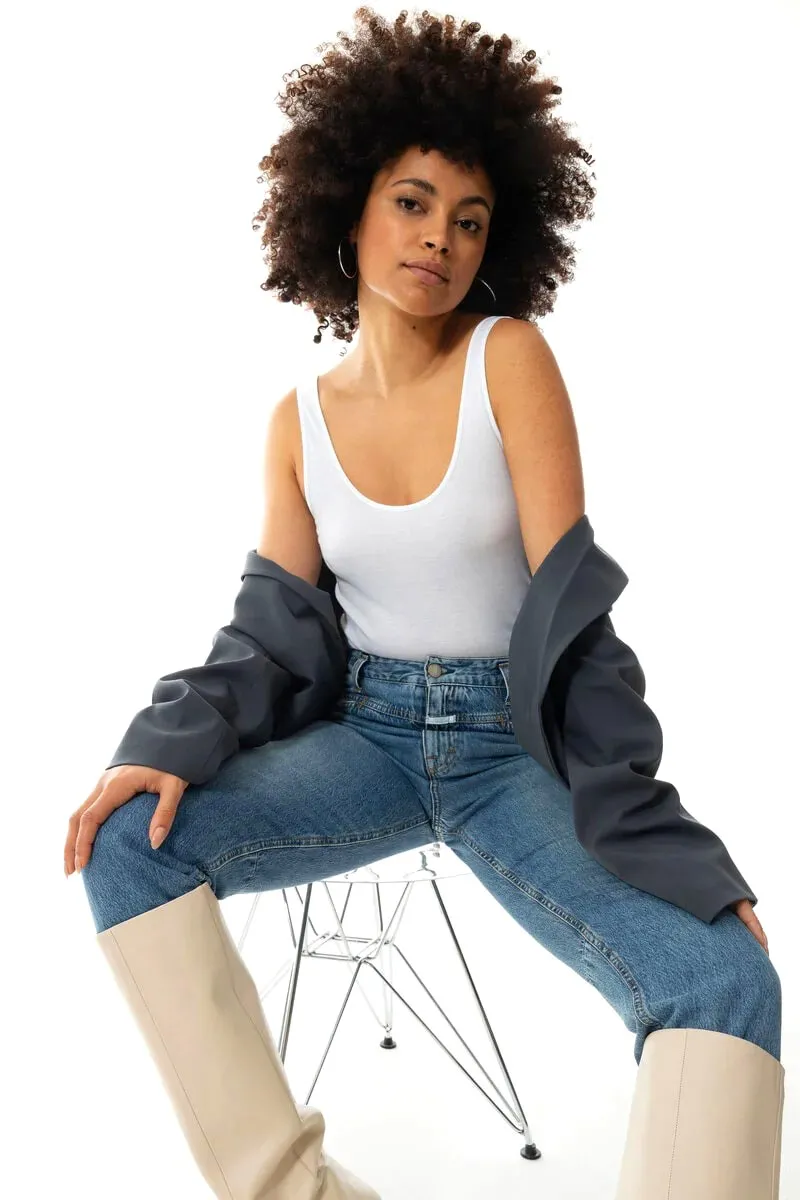 Хлопковая удлиненная майка Мэй Ноблесс белого цвета - Mey Noblesse top 25102 - 1 weiss Sporty-Hemd / sports top. Гладкая текстура материала, плоские, эластичные, но прочные швы. Края изделия обработаны эластичным кантом с сатиновой текстурой. 100% перуанский хлопок высокого качества