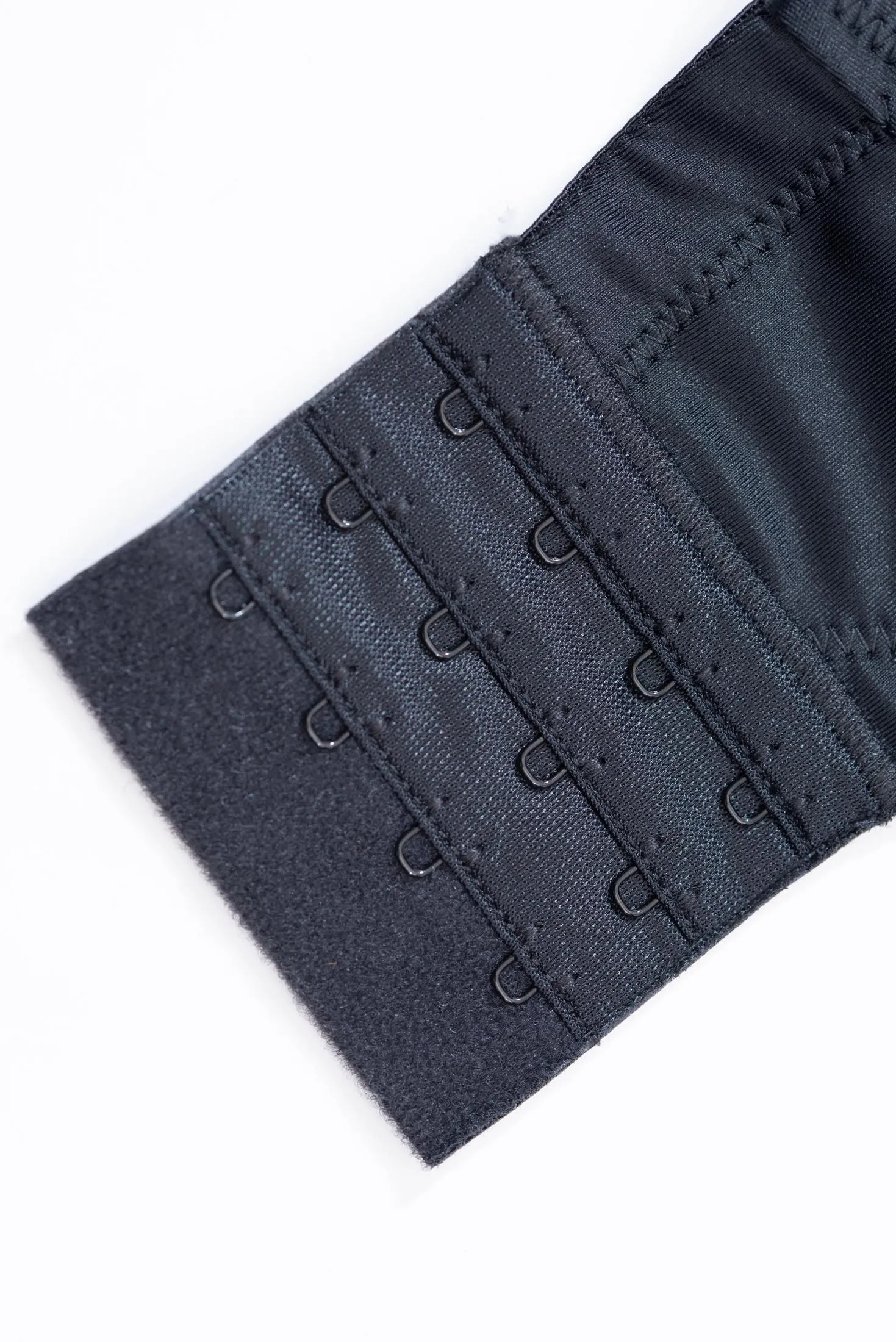 Узкий пояс под чашками компенсирует отсутствие косточек, оптимально поддерживая грудь и не создавая дискомфорта. Пояс впереди имеет полукруглую арочную форму, благодаря которой снижается давление на диафрагму. По бокам и сзади пояс широкий, хорошо сглаживает складки и обеспечивает уверенную поддержку. Спинка усилена прочной эластичной тканью. Застегивается на 4 крючка в 3 положениях.