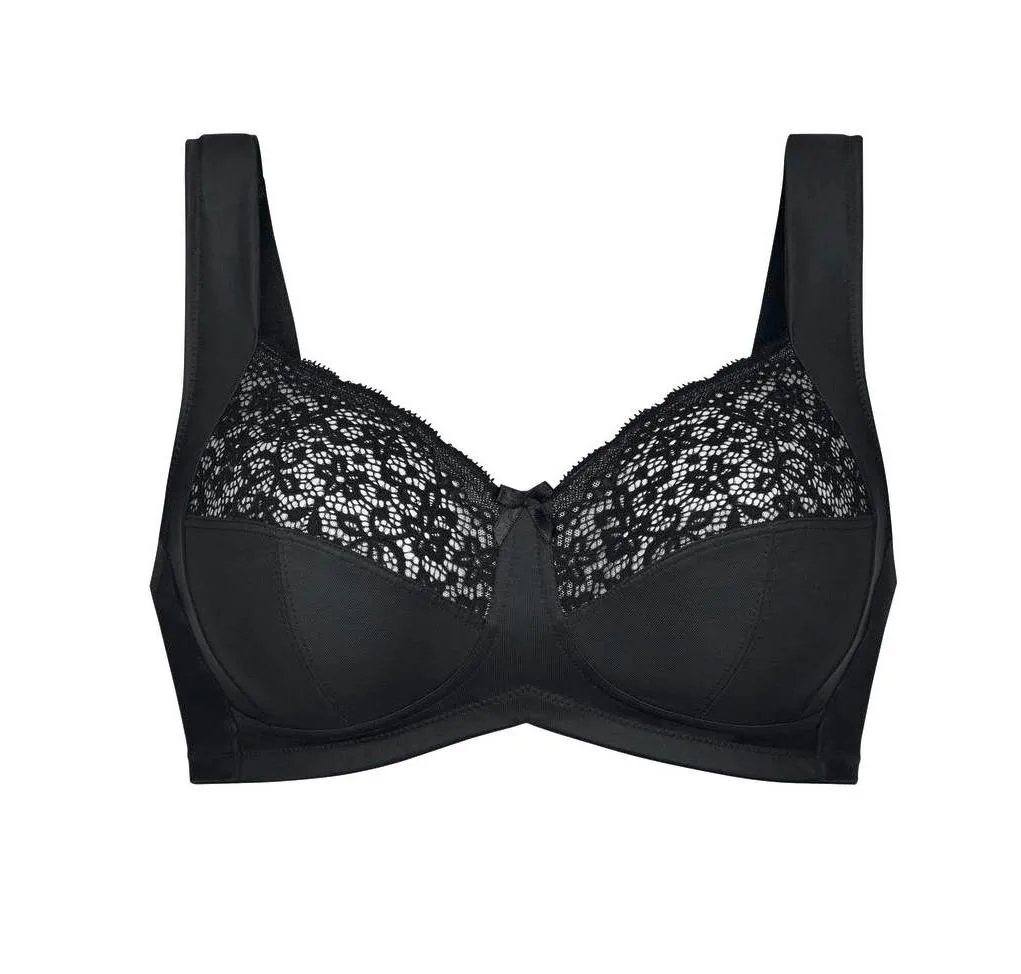 Разгрузочный бюстгальтер с мягкой чашкой без косточек Анита Гаванна черного цвета Anita 5813 - 001. Сложный многосоставной крой чашки обеспечивает максимальную поддержку груди. Сочетание вертикального и горизонтального швов создают красивую, округлую форму. А боковые поддерживающие панели, соединенные с бретелями, направляют грудь вперед и к центру. Нижняя часть чашки и боковой подкрой выполнены из гладкого, шелковистого, непрозрачного материала. Верхняя часть чашки - кружевная, по краю проходит тонкая эластичная окантовка для идеальной посадки.
