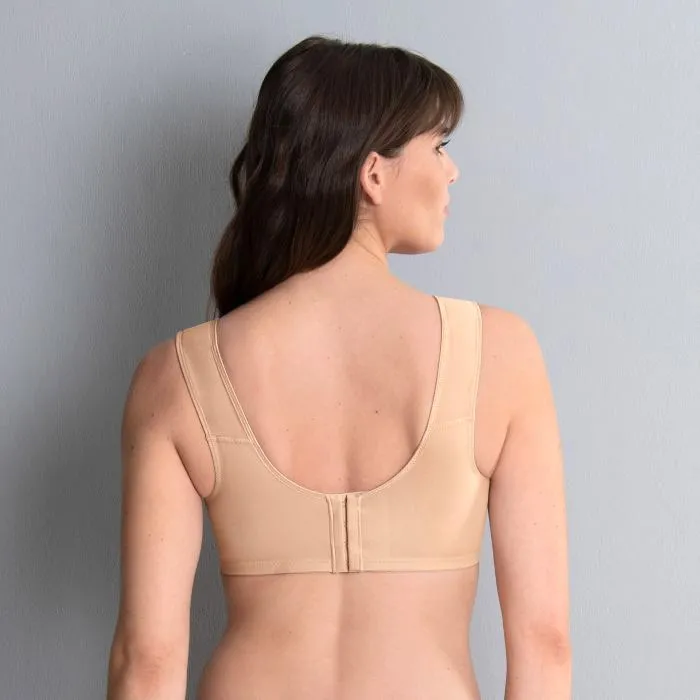 Поддерживающий бюстгальтер без косточек Анита Клара бежевого цвета - Anita Clara Wire-free Support Bra 5860 sand. Уверенная поддержка груди без использования косточек - за счет широких эластичных бретелей, которые адаптируются под любой рост без специальных креплений. Под бретелями - тонкий поролоновый слой для смягчения давления на плечи.