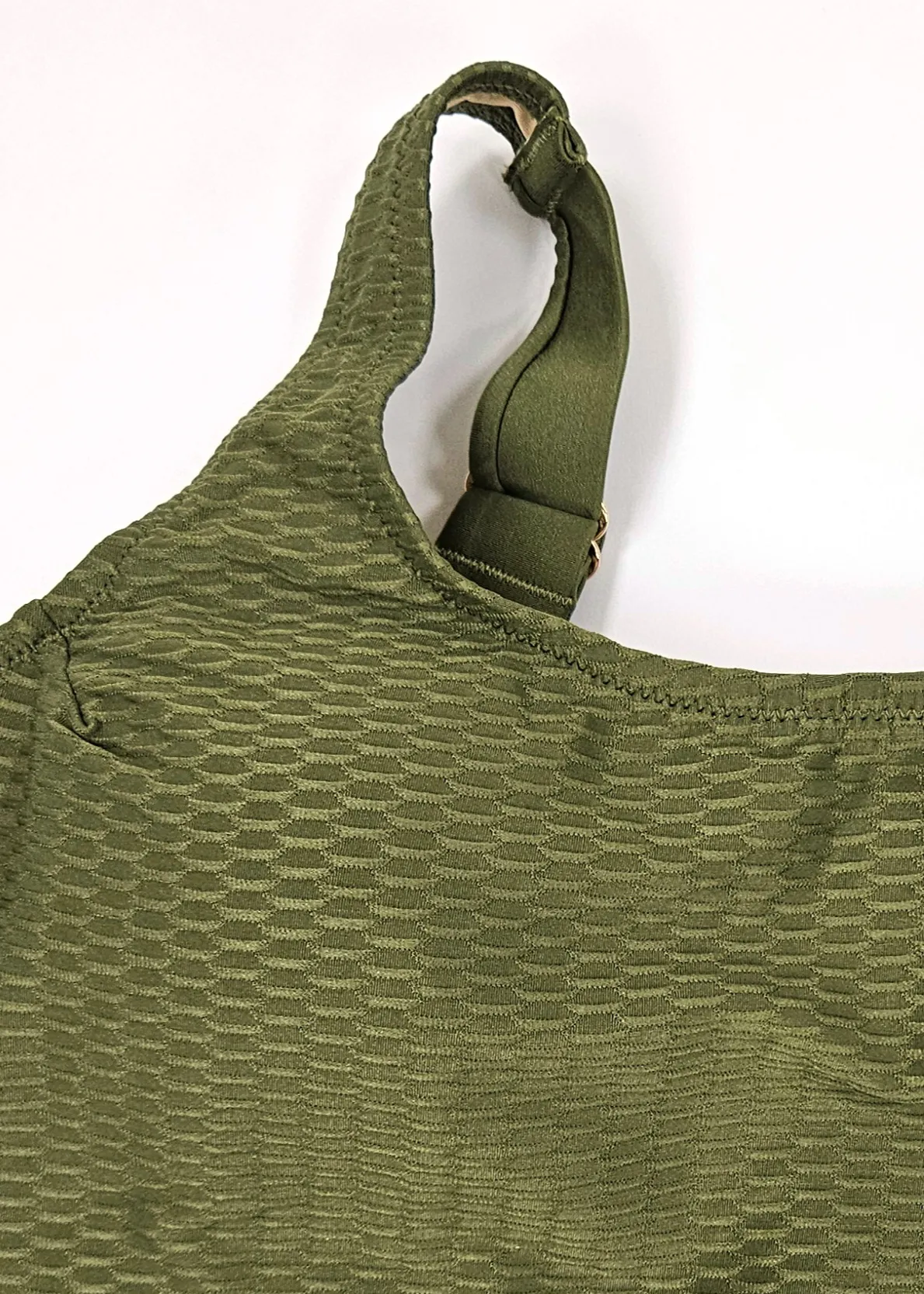 Ортопедический купальник с поясом Конфиденс Кармен оливкового жёлто-зелёного цвета из текстурного материала волны - Confidance Carmen 5120.