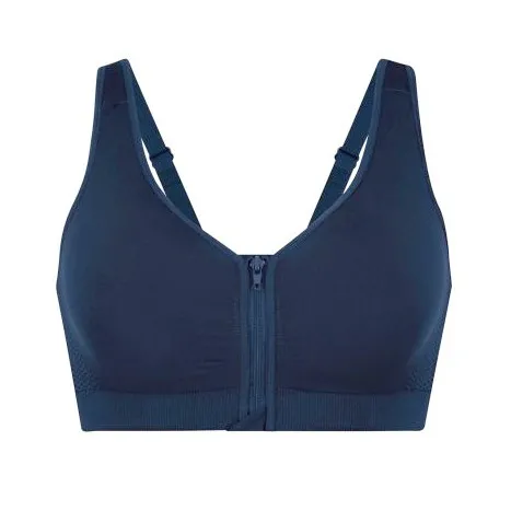 Мягкий топ-бюстгальтер без косточек для дома и отдыха Анита Кеа Лин тёмно-синего цвета - Anita Care Lynn Prothesen-BH 5768 maritim blue. Обеспечивает хорошую поддержку большой груди за счет эластичного пояса. Пояс широкий, за счет ширины создает уверенную поддержку, хорошо фиксируя грудь. Впереди под чашками - плотная широкая резинка, которая заменяет косточки и не препятствует кровообращению. Впереди - застежка-молния защитой кожи от замка. Внутри - съемные поролоновые чашечки в кармашках. Бретели с регулировкой длины, сзади классической ширины, впереди - широкие у основания. Бюстгальтер создает гладкий силуэт, не ощущается на теле и создает ощущение "второй кожи".