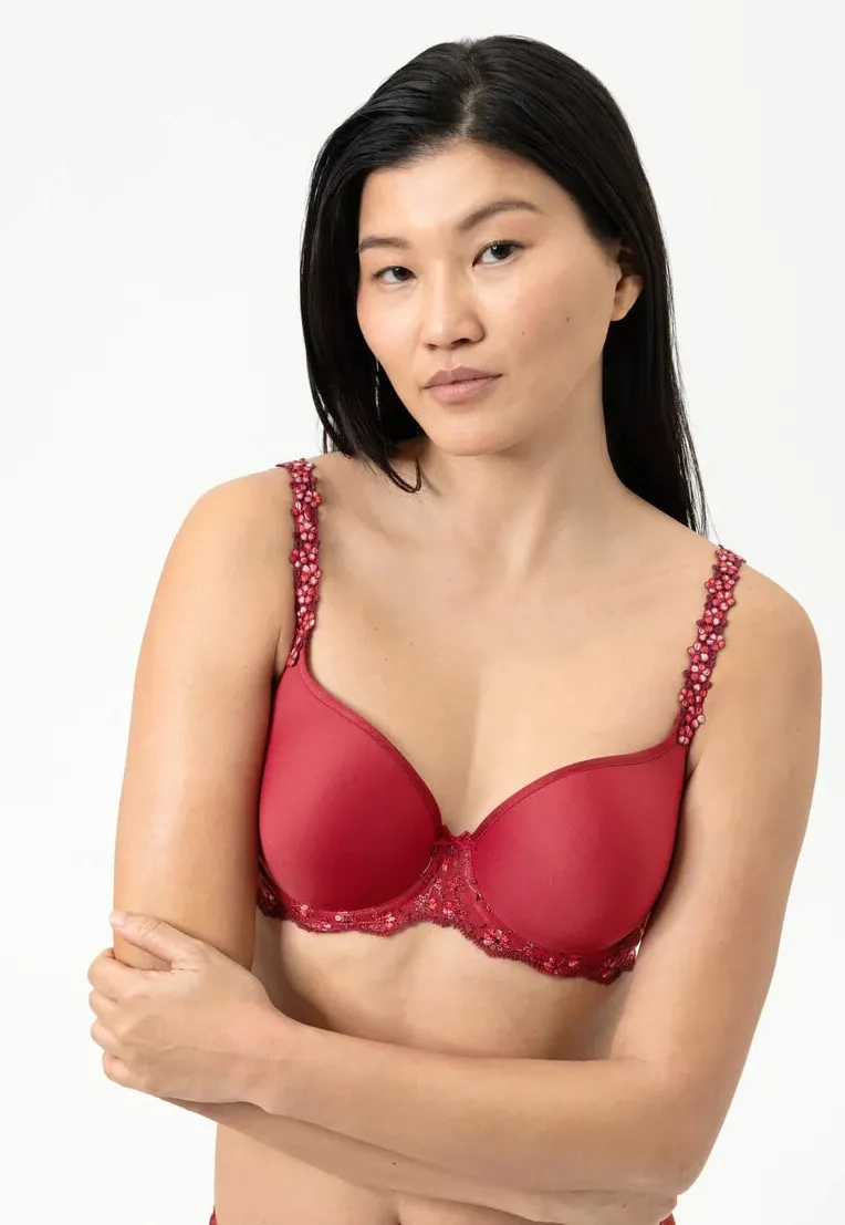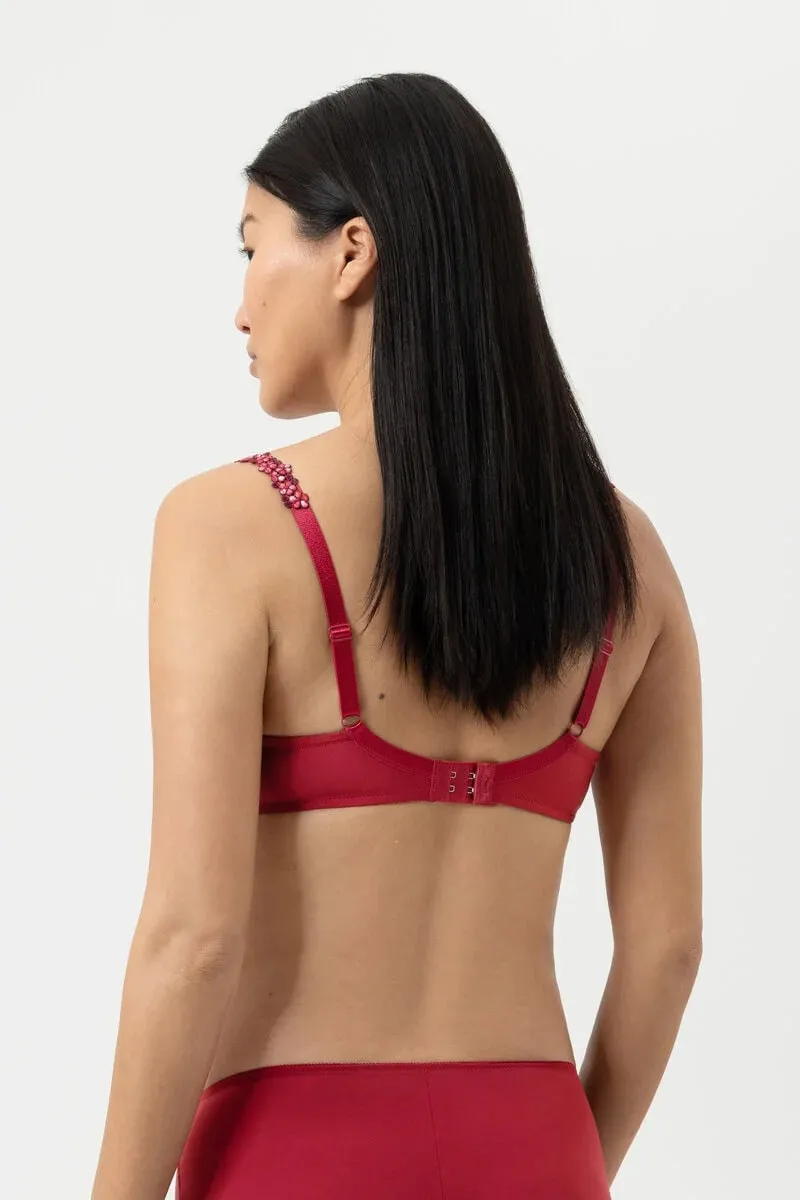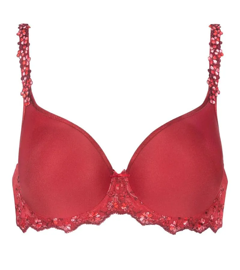 Бюстгальтер-спейсер роскошной вышивкой Мэй Делайтфул вишнёвого цвета - Mey Delighted Spacer-BH / spacer bra Delightful 74441 1727 Gala Red. Очень красивые кружевные мелкие цветочки-ромашки разных оттенков розового - эффектное украшение бретелей. Пояс бюстгальтера выполнен из многослойной сеточки, украшенной вышивкой.