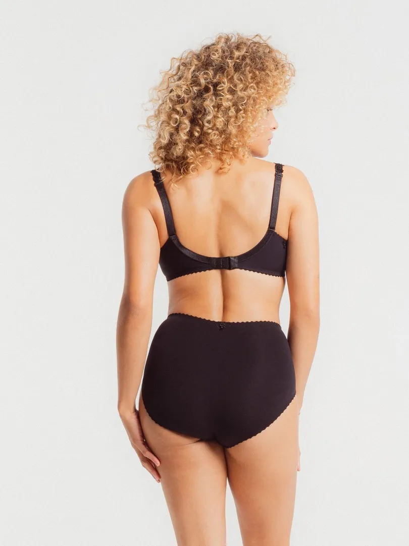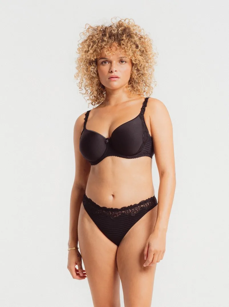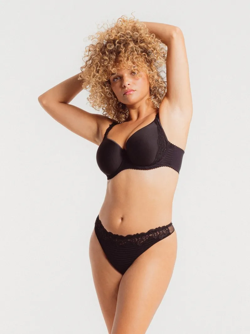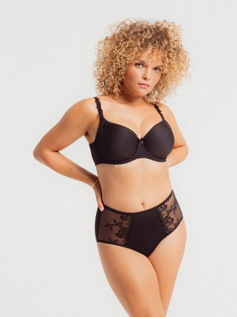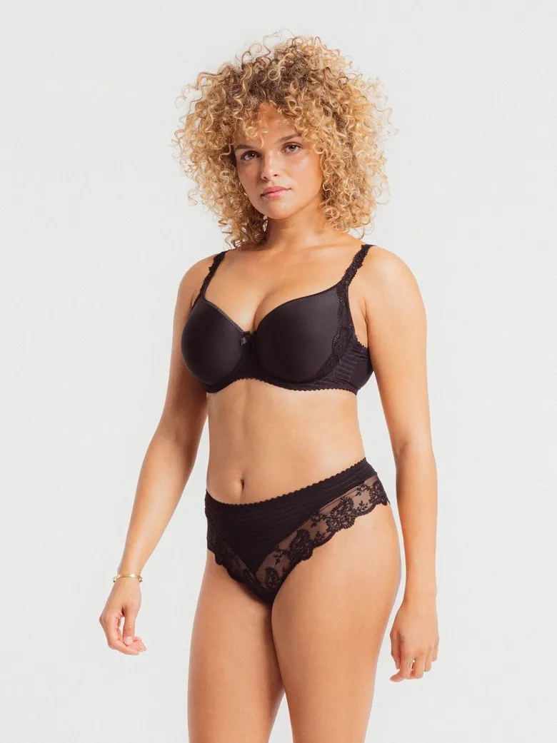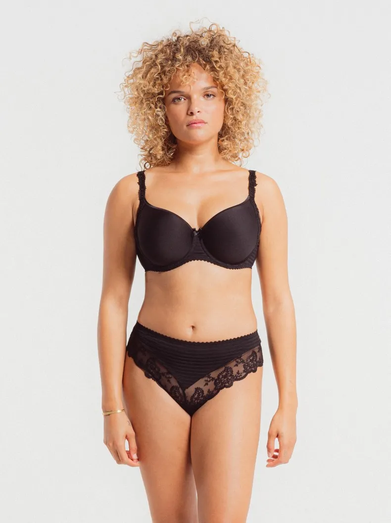 Бюстгальтер-спейсер с уплотненной чашкой на косточках Луиза Брак Элиз чёрного цвета - Louisa Bracq Elise SG SPACER Bra 419 06 NR0 noir. Тонкая дышащая чашка. Высокие косточки хорошо поддерживают грудь. Пояс впереди - арочной формы, такая конструкция снижает давление на живот. Аппликация на бретелях предотвращает лишнее растяжение, что особенно актуально для большой груди.