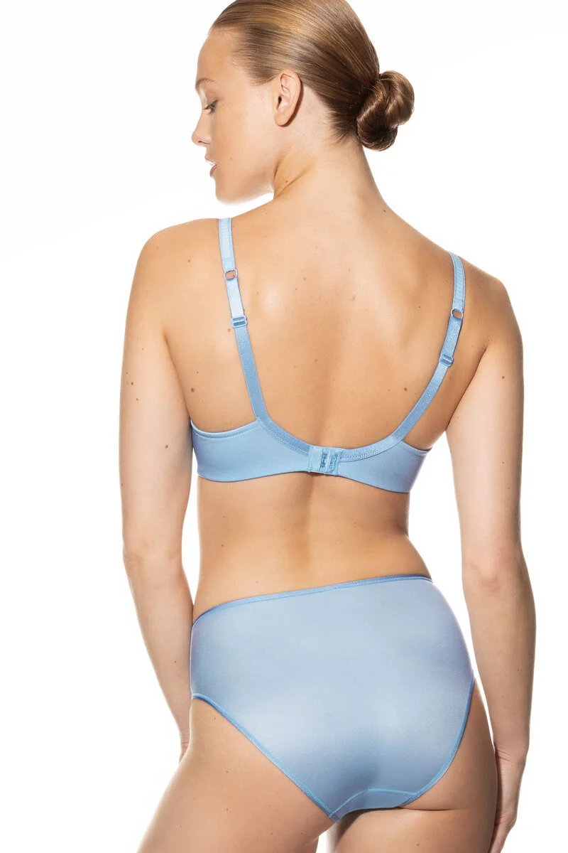 Бюстгальтер-спейсер Мэй Джоан с тишот чашкой светло-голубого цвета ангел - Mey Joan Spacer-BH/ spacer br 74254 544 angel blue. Благодаря инновационному материалу чашка легко пропускает воздух, достаточно тонкая, но при этом сохраняет форму и создает гладкий силуэт. Косточки с закруглениями, надежно вшиты, не выскакивают. Бретели с регулировкой длины, текстура резинки предотвращает соскальзывание креплений фурнитуры.