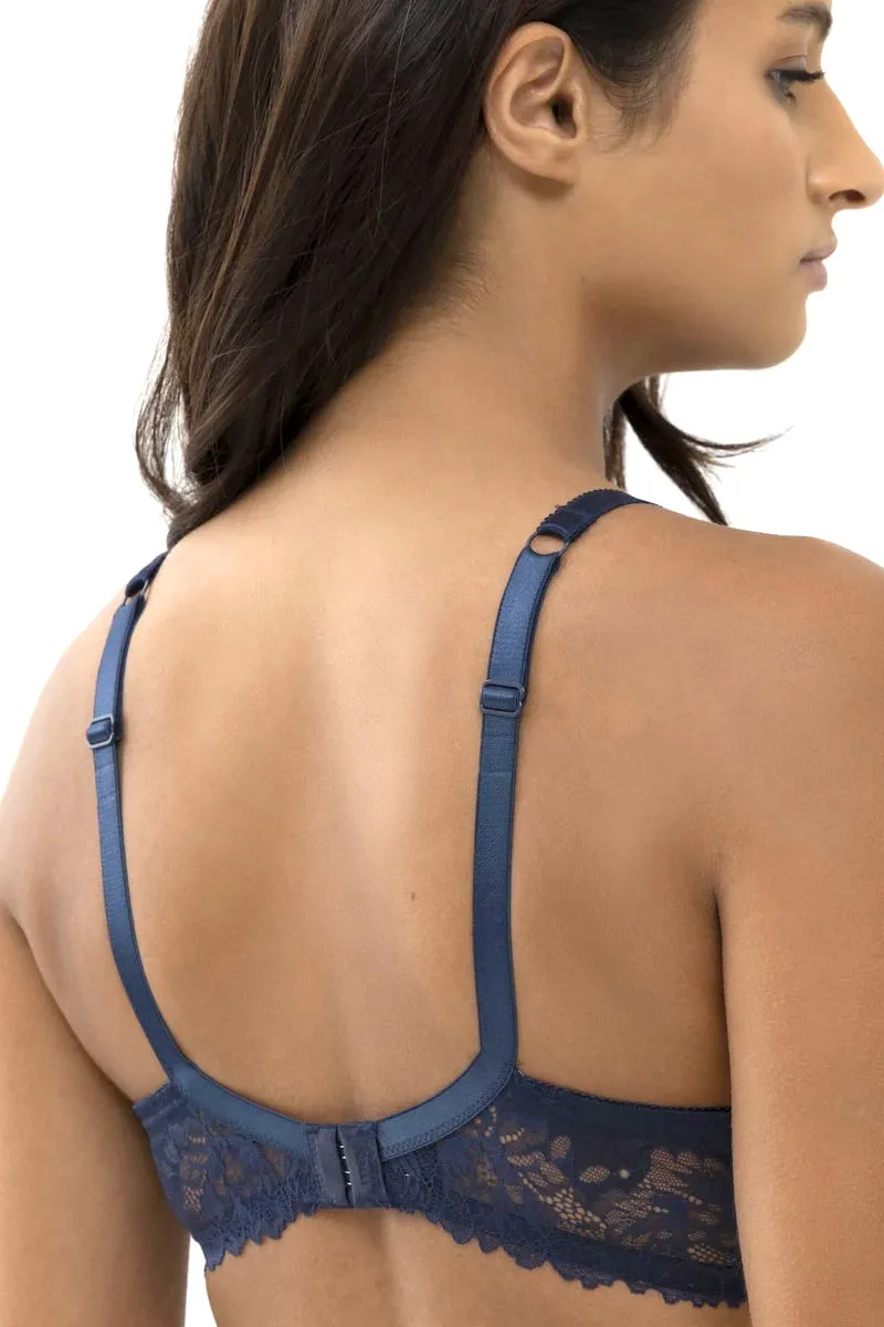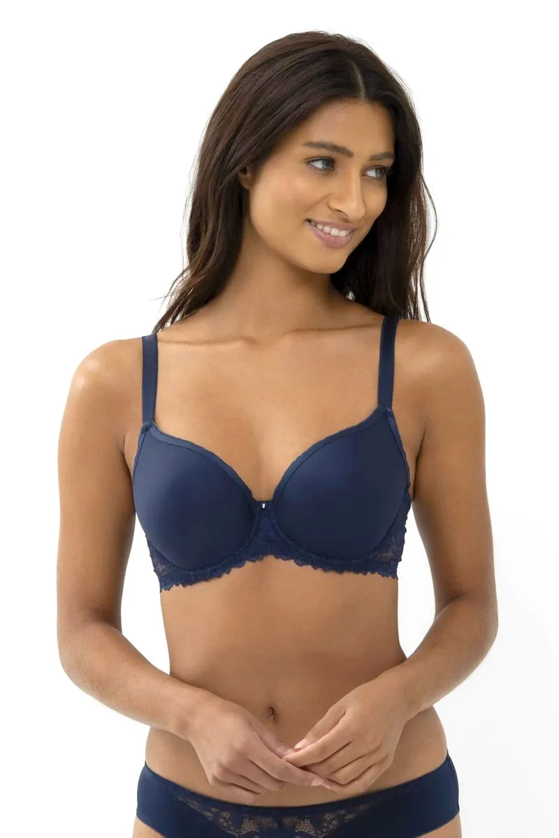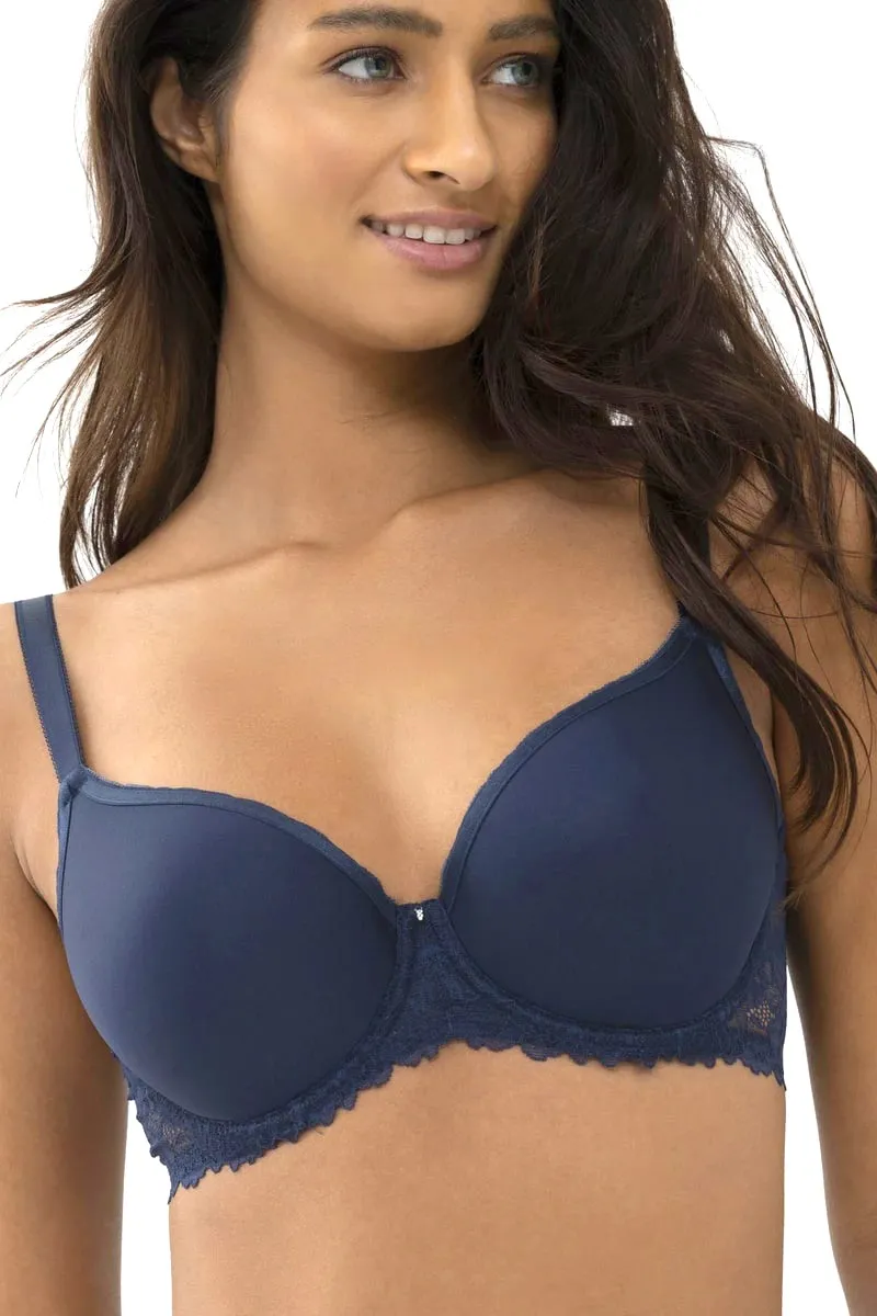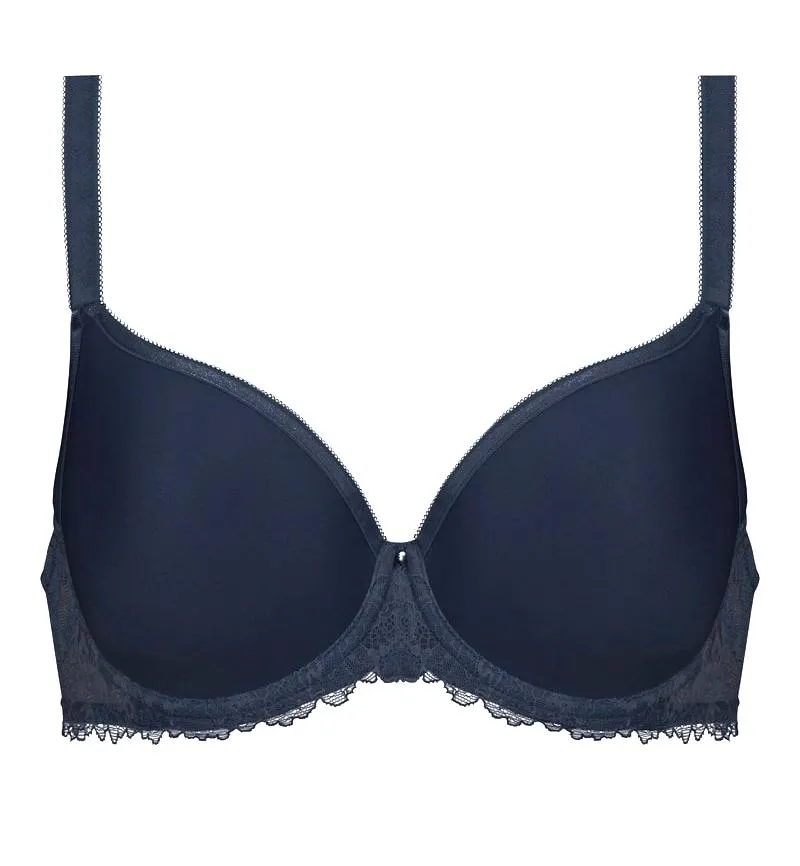 Бюстгальтер-спейсер Мэй Лакшериос с тишот чашкой тёмно-синего цвета - Mey Luxurious full cup spacer bra Luxurious 74285 408 night blue. Благодаря инновационному материалу чашка легко пропускает воздух, достаточно тонкая, но при этом сохраняет форму и создает гладкий силуэт. Косточки с закруглениями, надежно вшиты, не выскакивают. Эффектный кружевной пояс. Бретели с регулировкой длины, текстура резинки предотвращает соскальзывание креплений фурнитуры.